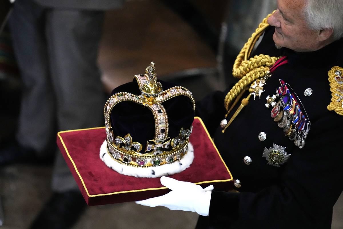 Koruna svatého Edwarda ze 17. století, jíž bude Karel III. korunován