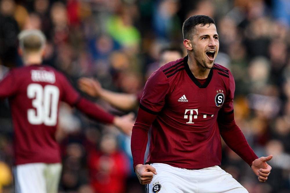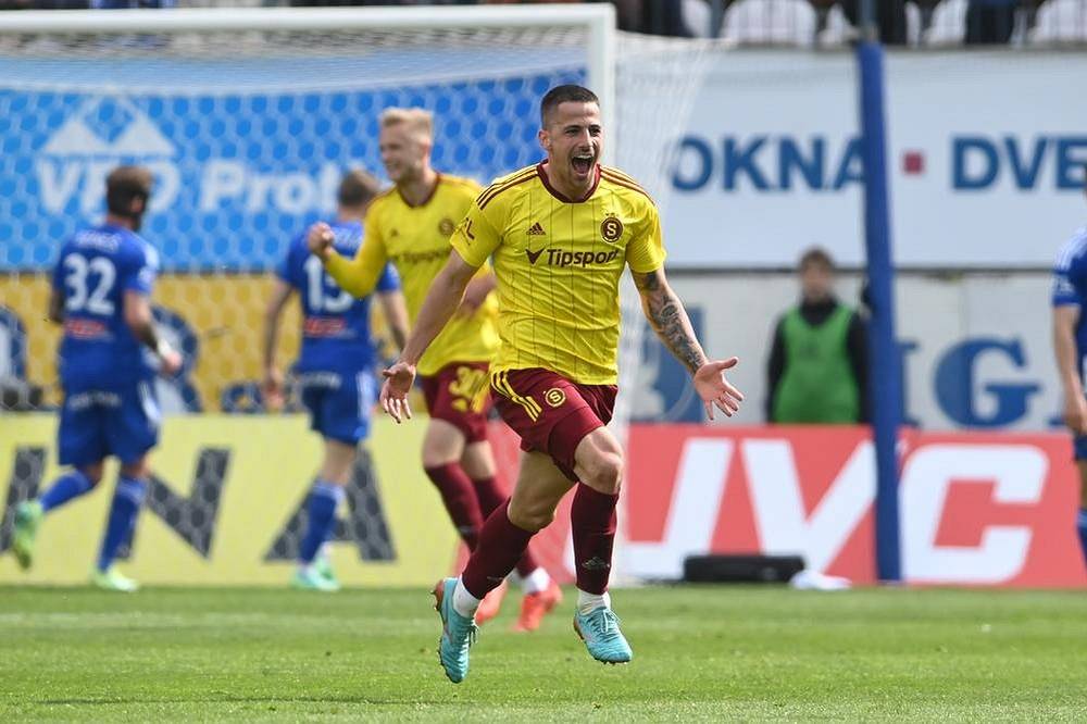 Martin Minčev ze Sparty Praha oslavuje gól.