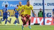 Fotbalista Sparty Martin Minčev slaví gól v utkání 1. kola nadstavby první fotbalové ligy na půdě Sigmy Olomouc.