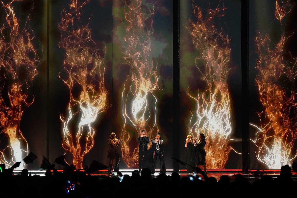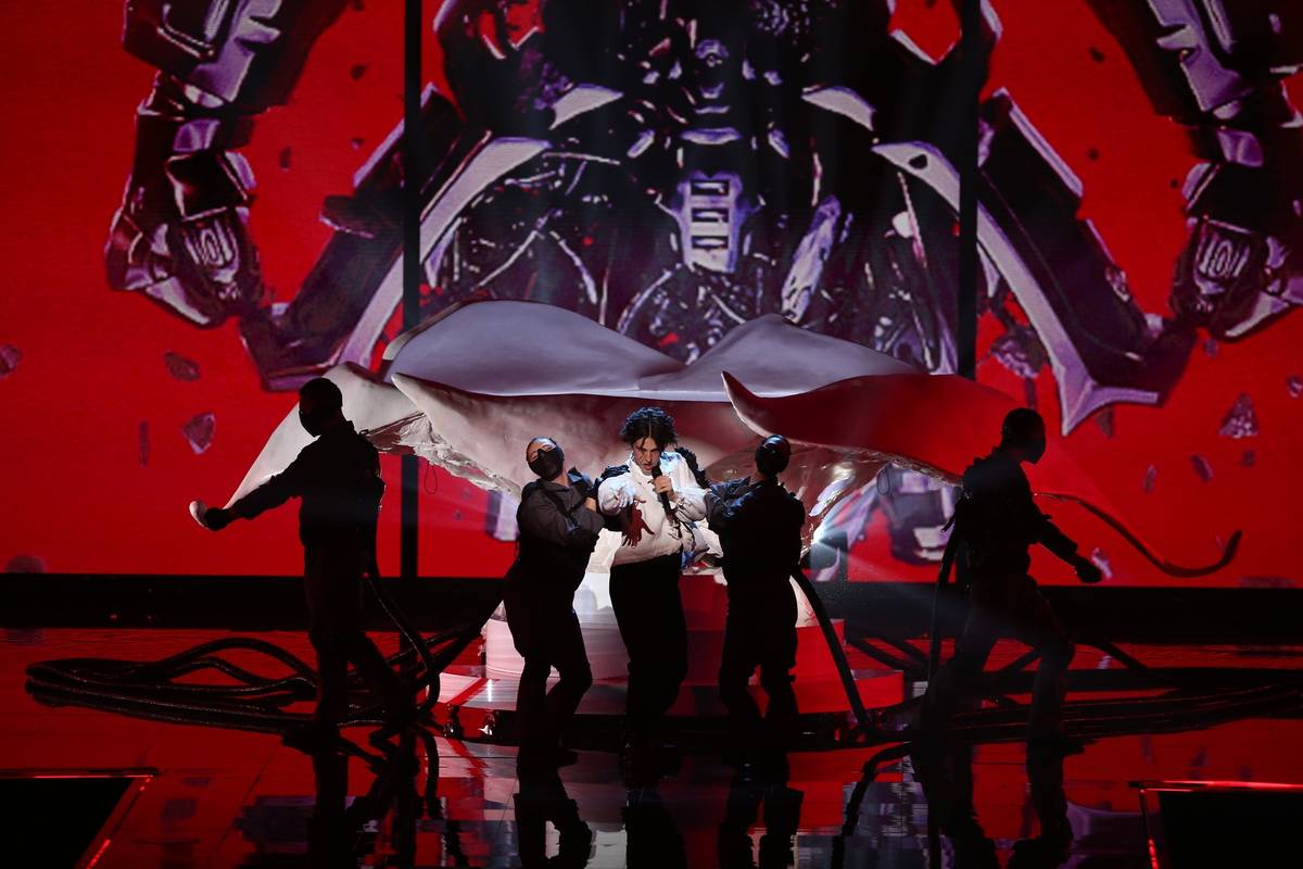 Finsko a píseň Cha Cha Cha Cha, kterou přednesl Käärijä v jedovatě zeleném bolerku. Tanečníci v růžovém na pódiu vystřihli lidský vláček.