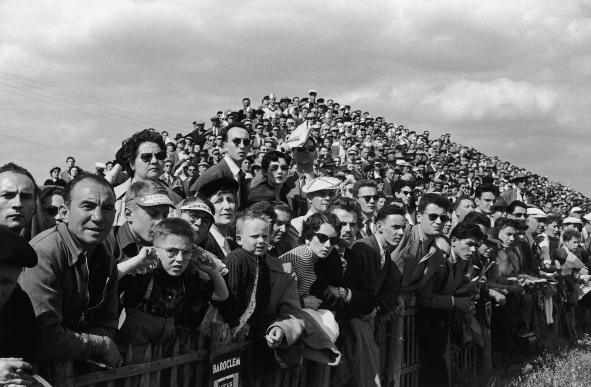 24 hodin Le Mans přinášelo vítězství i smrt. 11. června 1955 se tu odehrála nejtragičtější nehoda v dějinách motorsportu. V tom roce se trasu vydali nejlepší jezdci té doby - Fangio, Moss, Hawthorne, Levegh, Kling, Fitch a další, čekal se dramatický závod. Kolem okruhu se tlačilo přes 300 tisíc diváků (na snímku).
