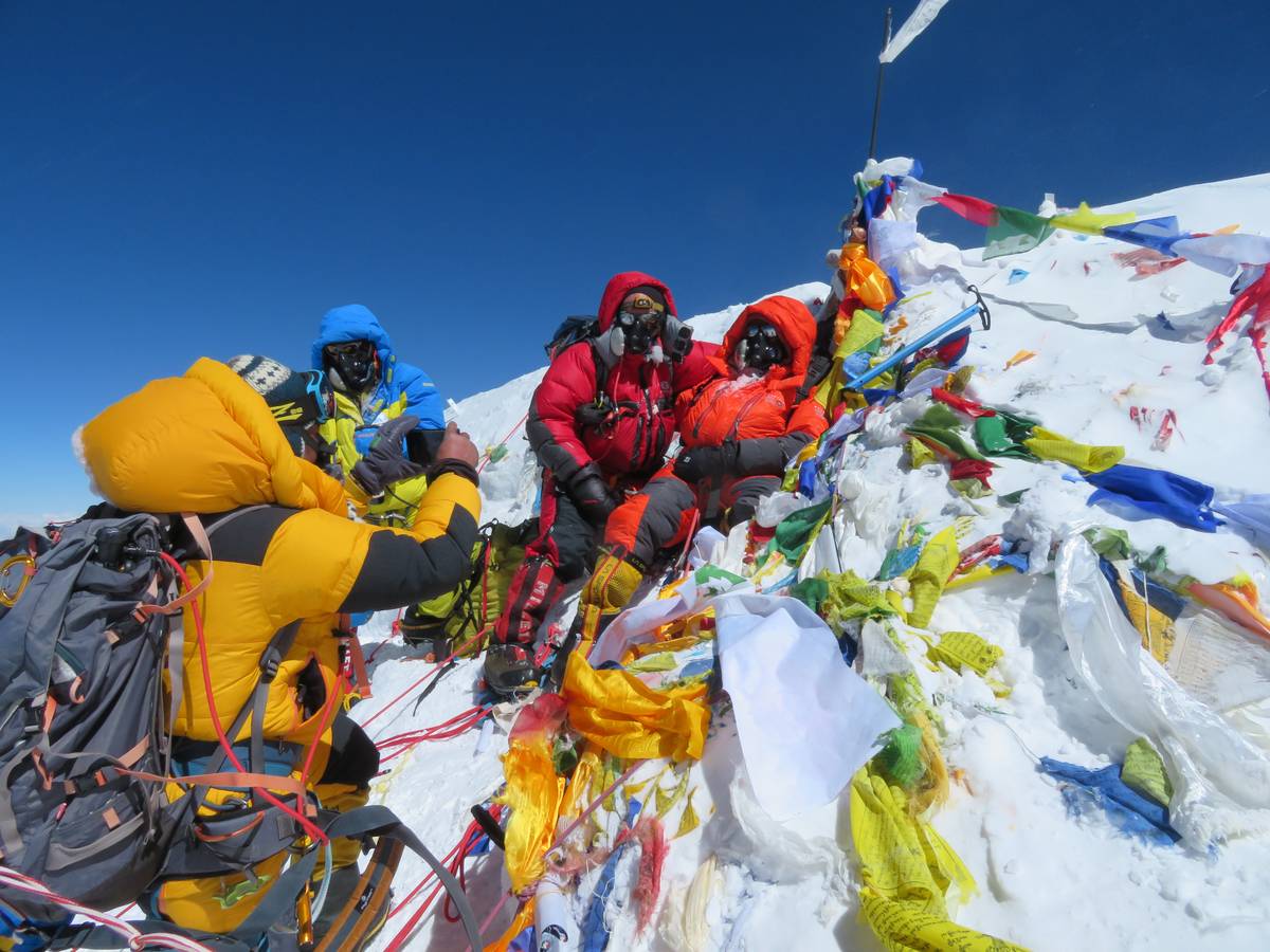 Vrcholové foto Martina Jáchyma (druhý zprava) , který zdolal jako 16. Čech Everest 19. května.