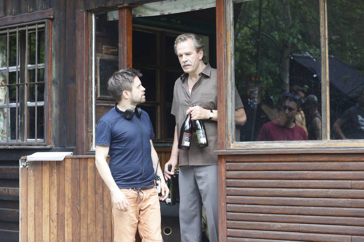 Režisér Jiří Mádl sdílí své představy, jak by měla scéna, záběr vypadat. Ve středu sedí Táňa Pauhofová. Zcela vpravo sedí Jacob Erftemeijer.