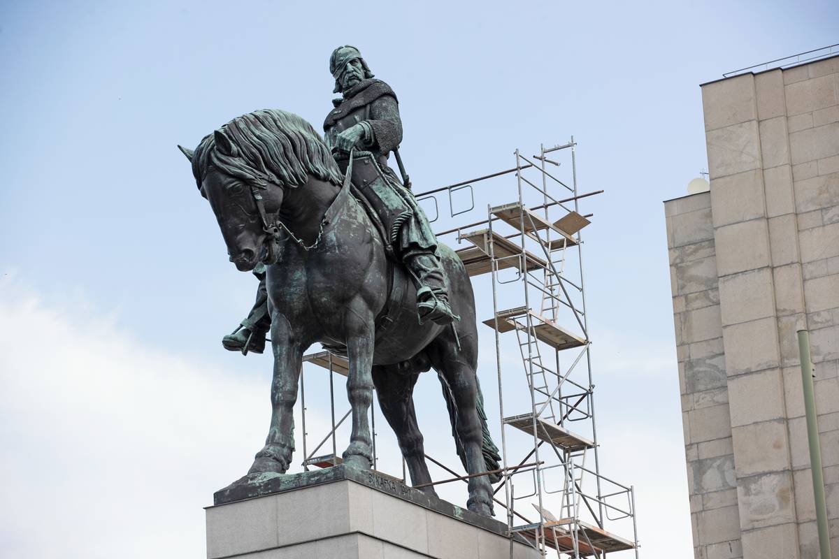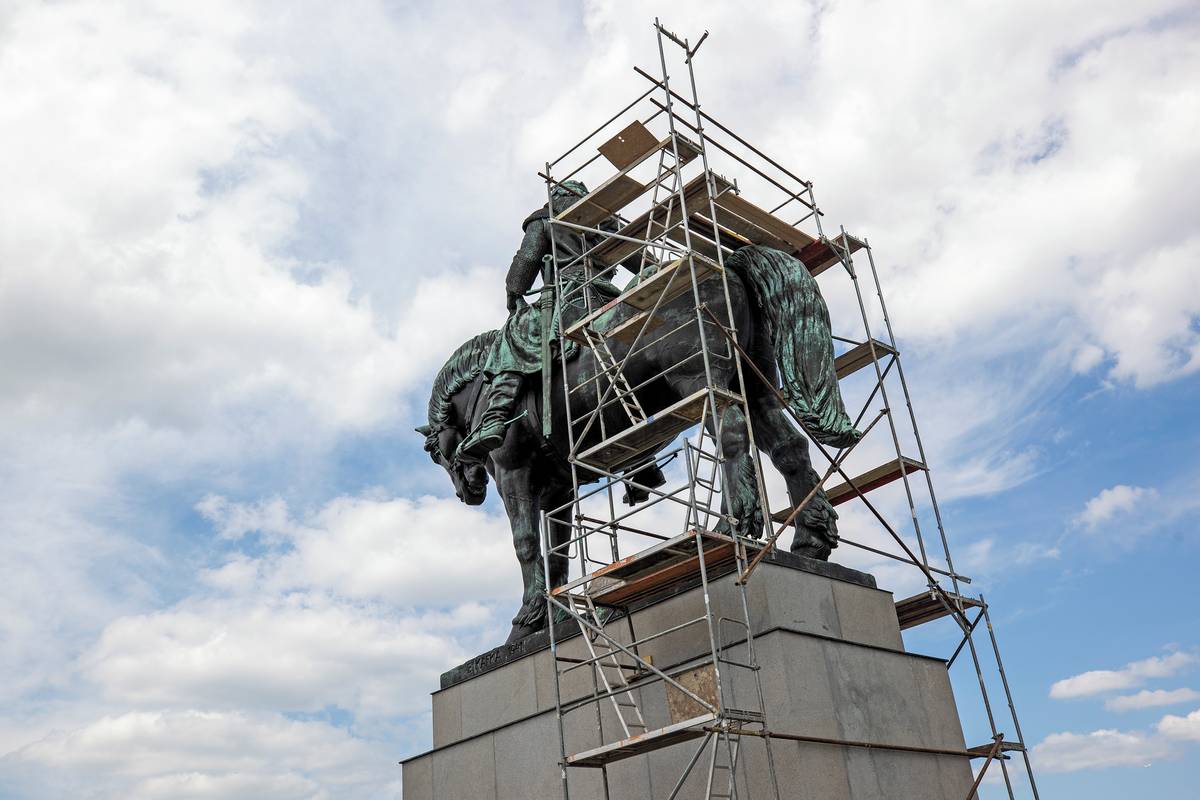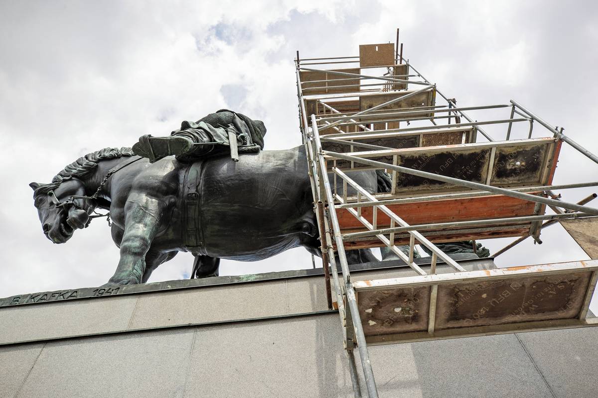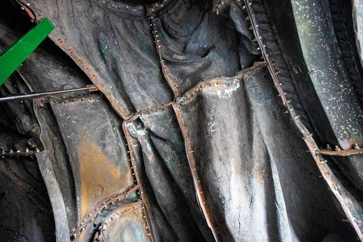 Do původní konstrukce přibyly prvky, které mají sochu více zpevnit.
