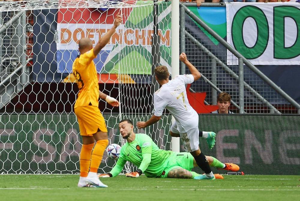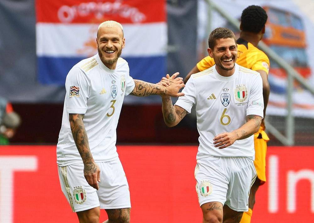 Italský fotbalista Davide Frattesi podruhé překonává obranu Nizozemska