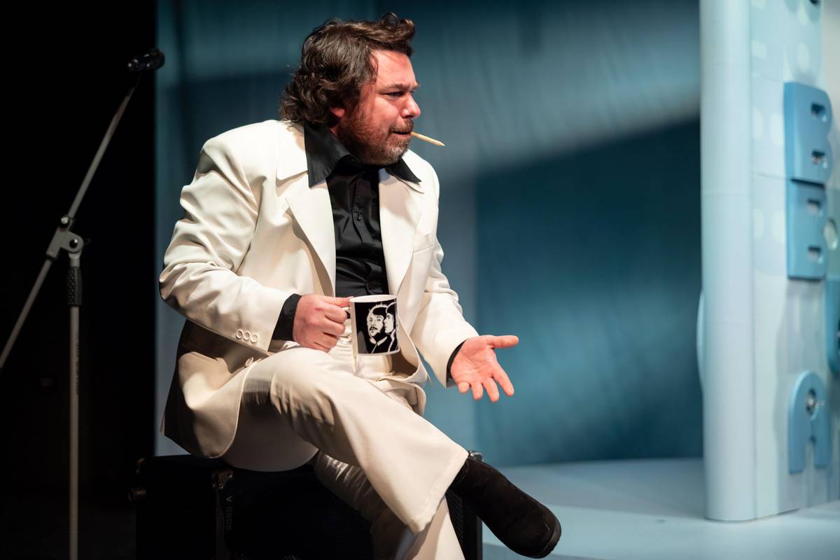 Na fotografii z inscenace Agnetha volá S.O.S., kterou tuto neděli uvede Národní divadlo moravskoslezské, jsou Vojtěch Johaník jako Björn, Veronika Boráková v roli Agnethy, Kamila Janovičová coby Frida a Martin Dědoch jako Benny.