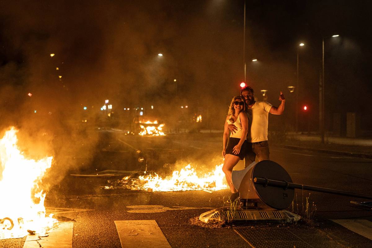 Sedmnáctiletý Nahel M. přišel o život v úterý ráno za volantem krátce poté, co se ho policie pokusila zastavit. Když odmítl uposlechnout výzvu a znovu se rozjel, jeden z policistů po něm z bezprostřední blízkosti vystřelil. Mladý muž, který má severoafrické kořeny, zranění krátce poté podlehl. Na snímku hořící pneumatiky blokující ulici v Bordeaux, 29. června.
