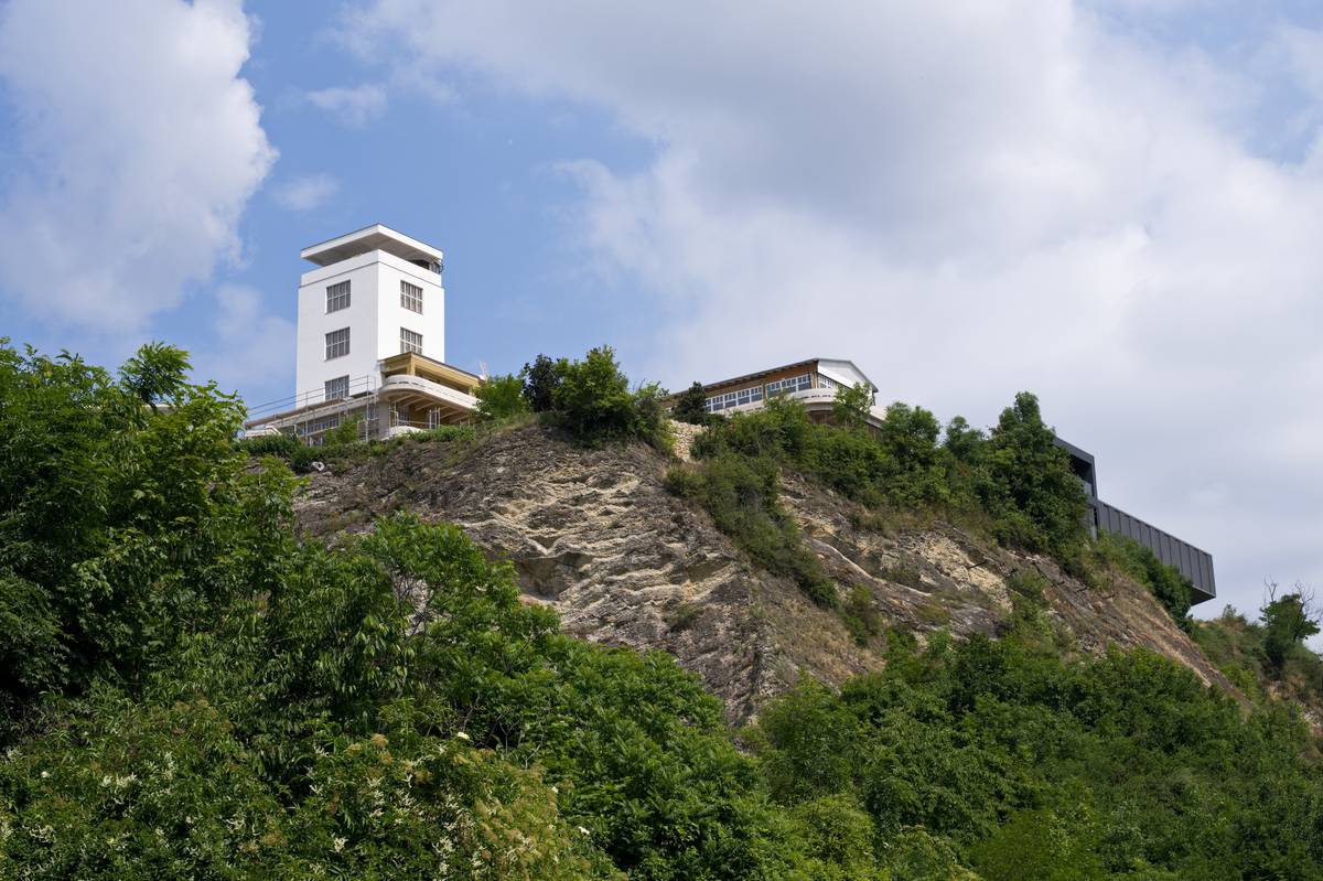 Balkony nové části na dvou místech vyčnívají nad Barrandovskou skálu.