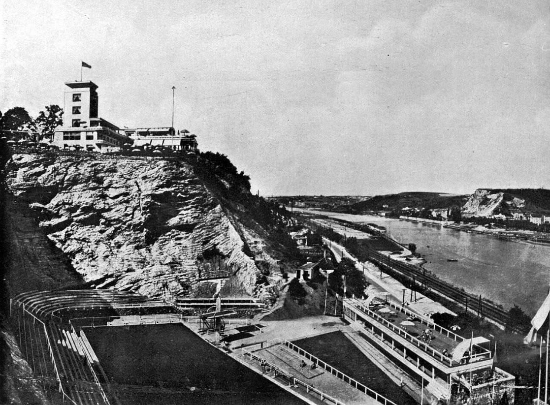 Barrandovské terasy a bazén pod skálou v roce 1932.