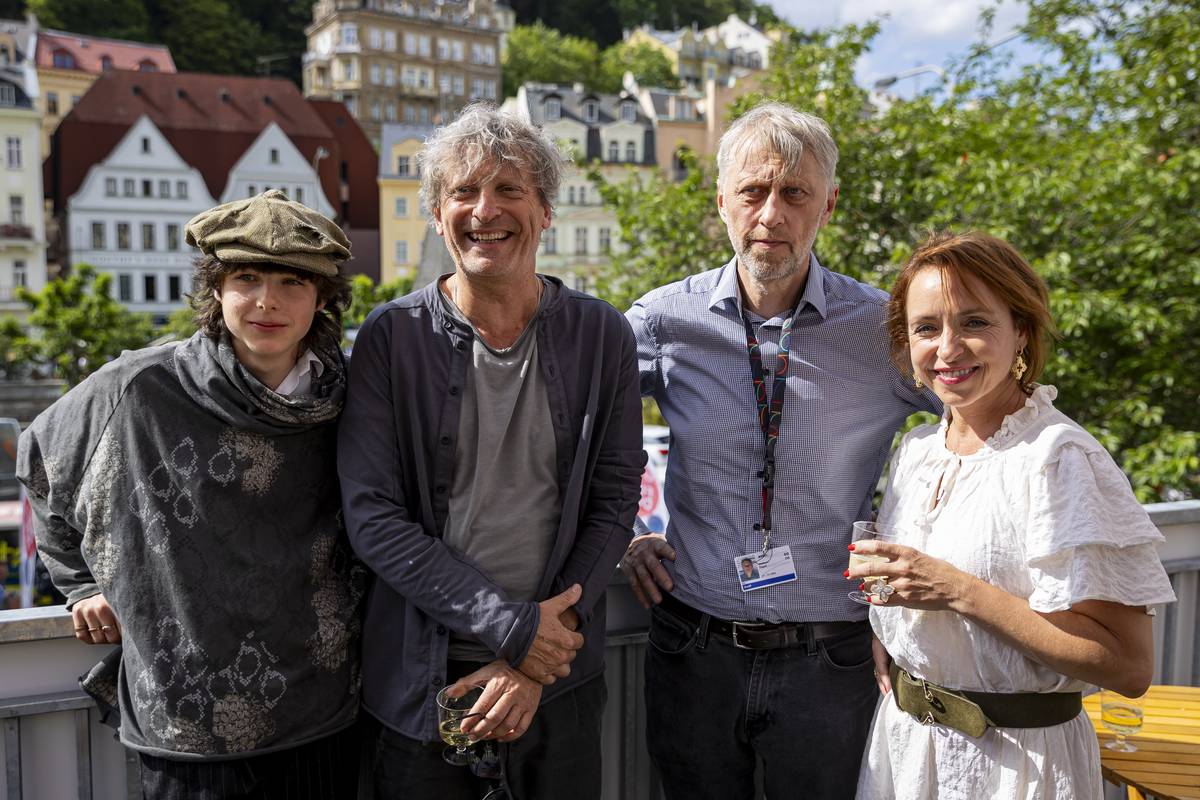 Tvůrci filmu Citlivý člověk se 2. července 2023 v rámci 57. Mezinárodního filmového festivalu v Karlových Varech setkali s novináři. Na snímku zleva Jaroslav Cuhra, David Prachař, Jáchym Topol a Tatiana Dyková.