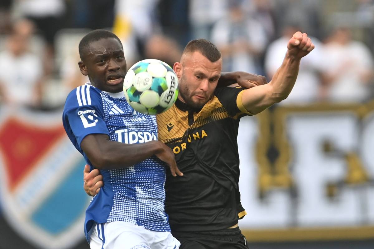 Zleva Patrik Vydra ze Sparty a Stanley Kanu ze Zlína.