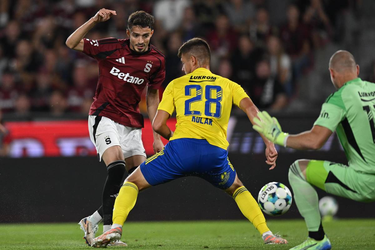 Kapitán Sparty Lukáš Haraslín prostřelil brankáře Zlína Stanislava Dostála, jeho gól ale neplatil.