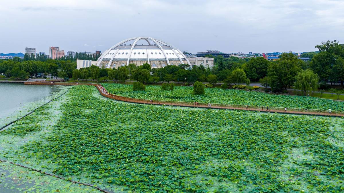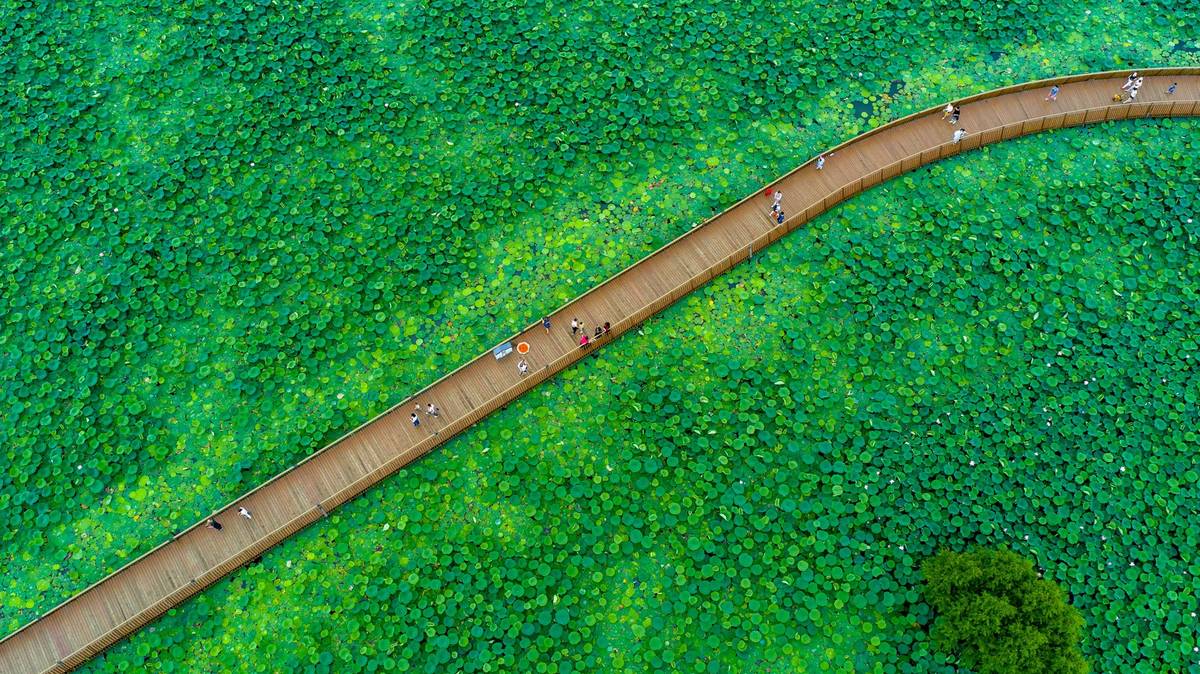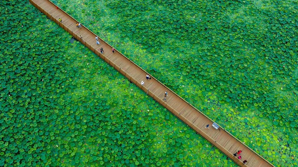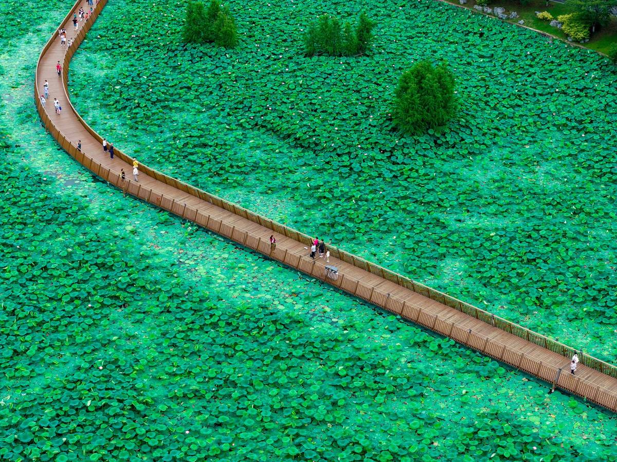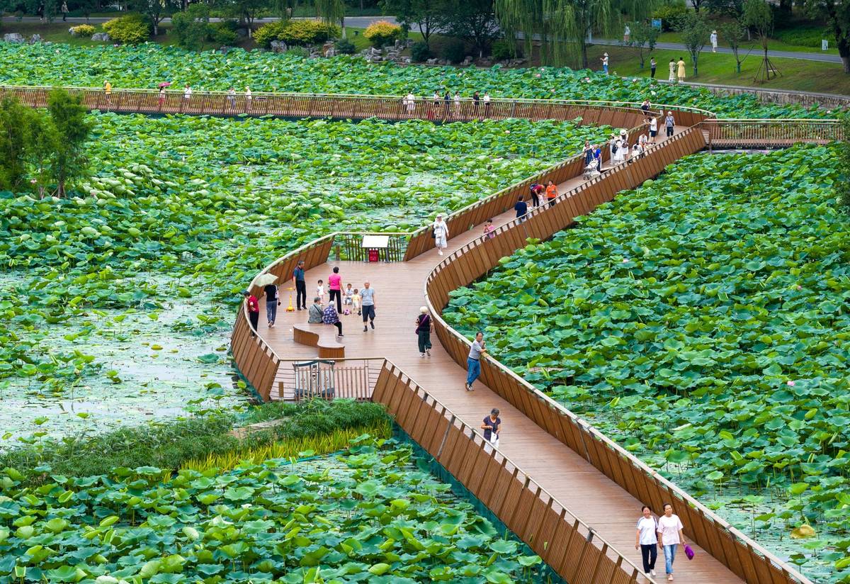 Vodní park Süan-wu pokrytý lotosy