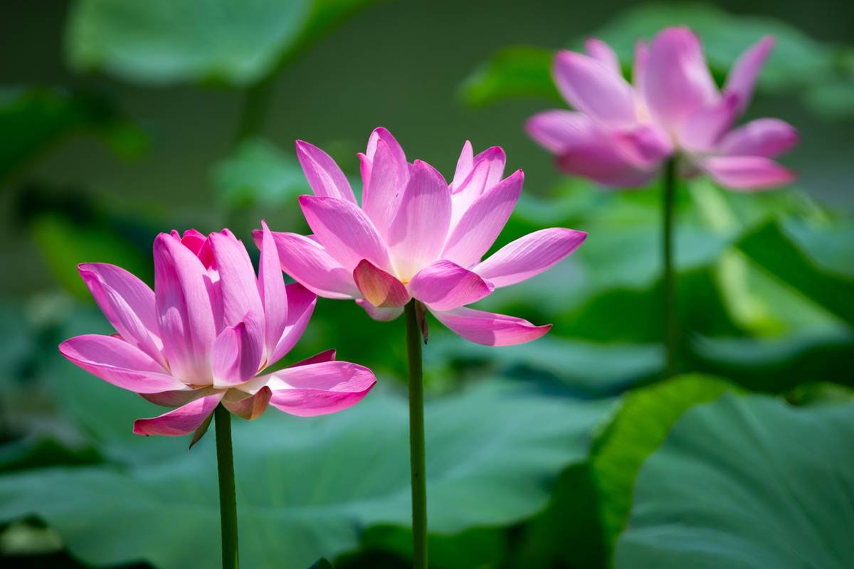Lotosy postupně začínají v červenci vykvétat a mají takovouto růžovou barvu.