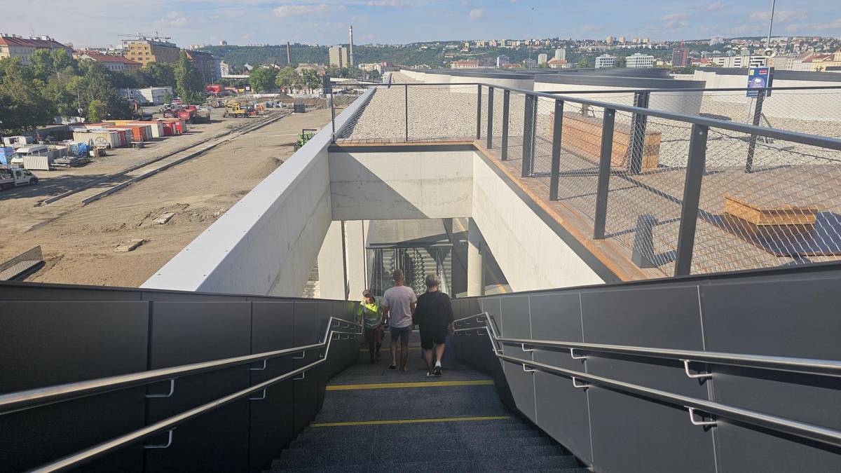 Cesta po schodech na vyhlídku na nádraží Praha-Bubny