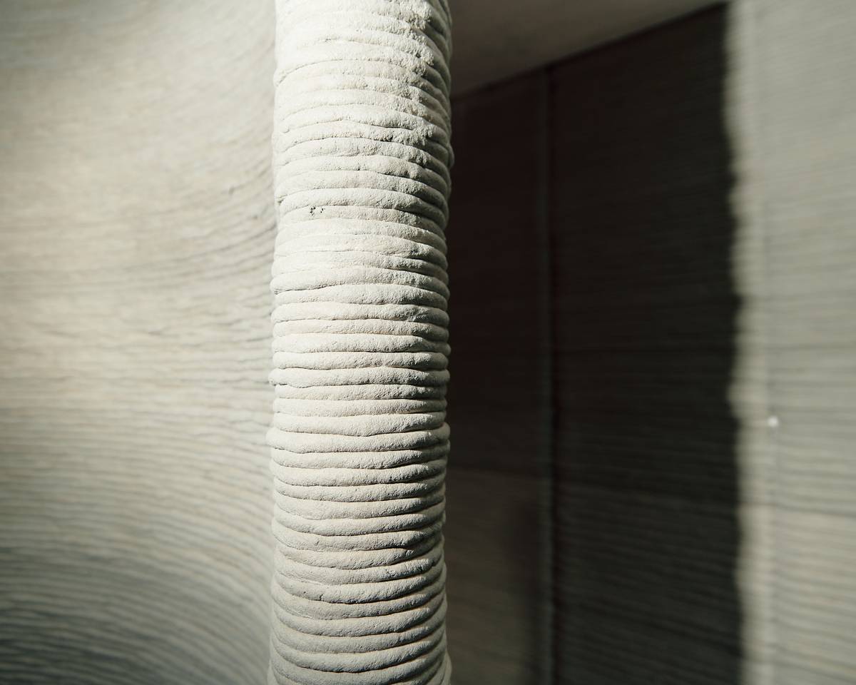 Architektura domu byla inspirována organickým světem s použitím robotické technologie 3D tisku betonem.
