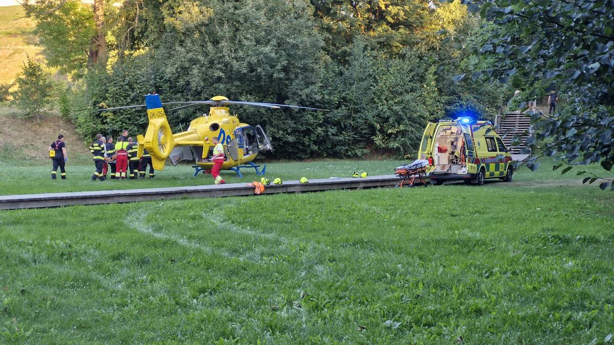 Vrtulník musel přistát na louce pod hrází Konventského rybníka poblíž místa události.
