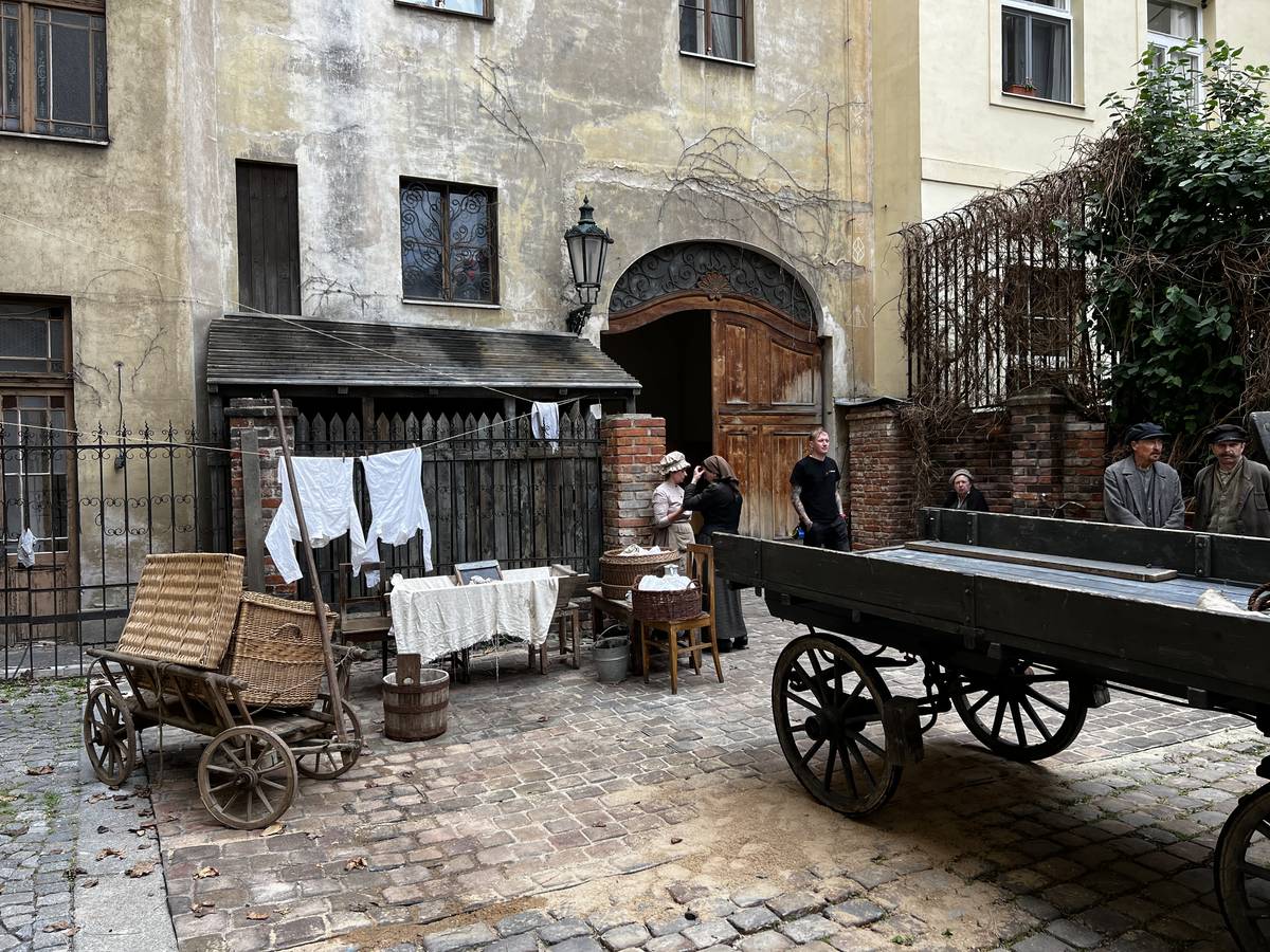 Natáčení před domem, kde bydlí filmový Franz spolu s rodiči a sestrami. Filmaři natáčeli tuto scénu v ulici Boršov v centru Prahy.