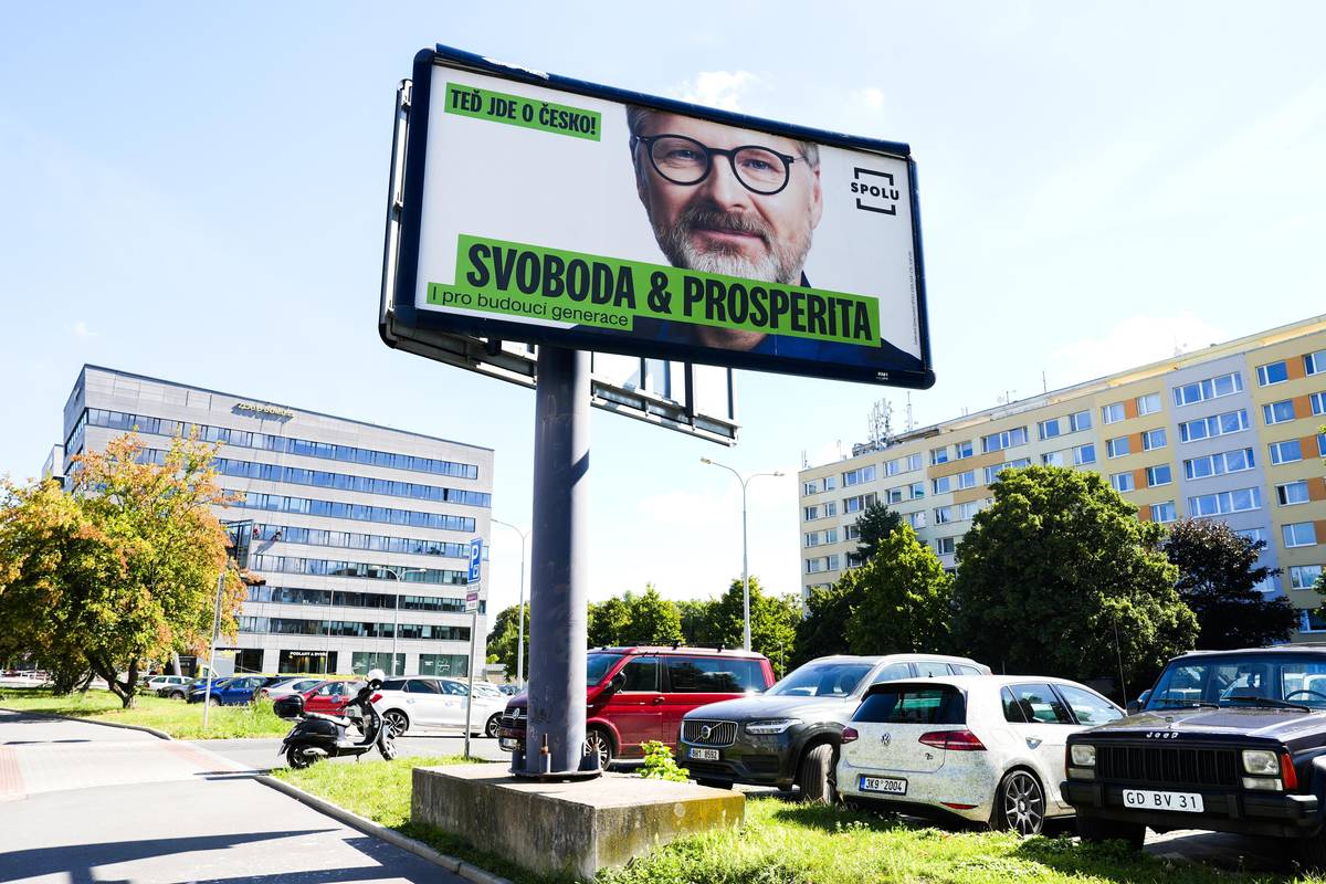 Koalice Spolu logicky na hlavních billboardech vsadila na premiéra Petra Fialu.