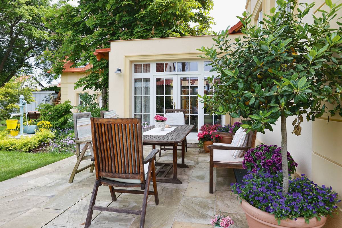 Z léta opuštěné ruiny a zarostlé, zpustlé zahrady udělala naše hostitelka během dvou let skvělé místo