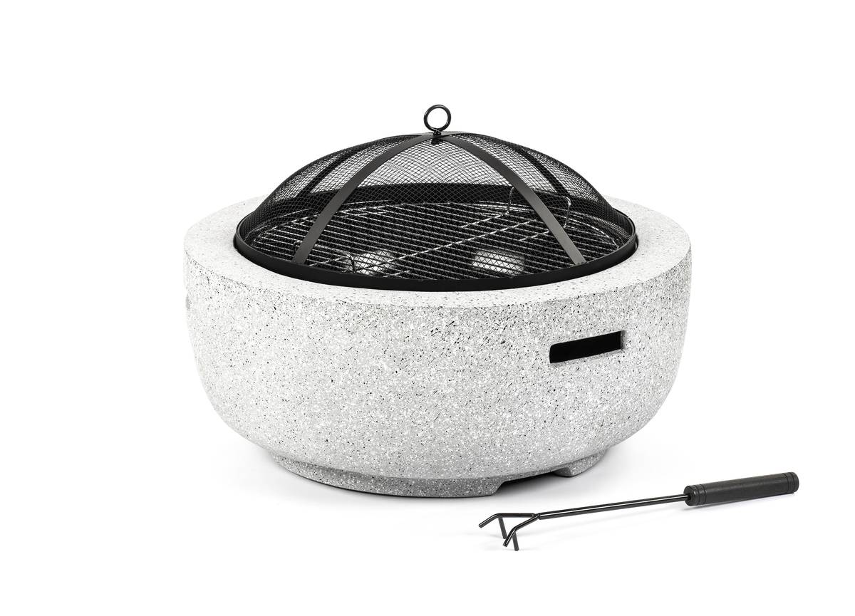 Ohniště z páleného kamene Fieldmann, průměr 60 cm, chromový rošt, 3 499 Kč