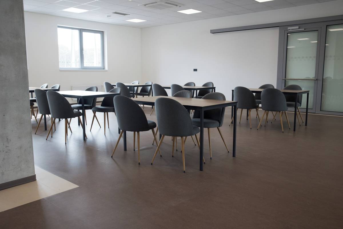 Zázemí pro poradu na novém stadionu v Hradci Králové.