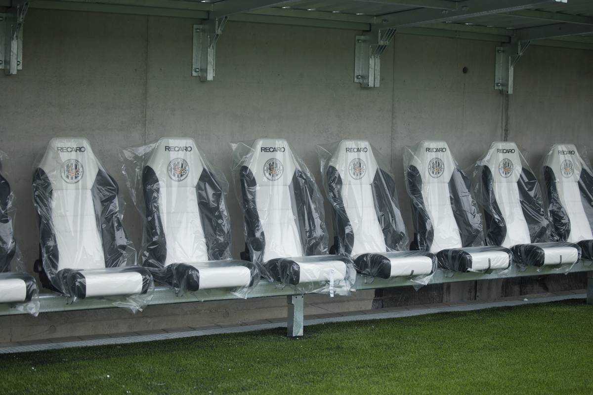 Lavička, na niž usednou při prvním zápase fotbalisté, které trenér Jozef Weber nepostaví do základní sestavy.