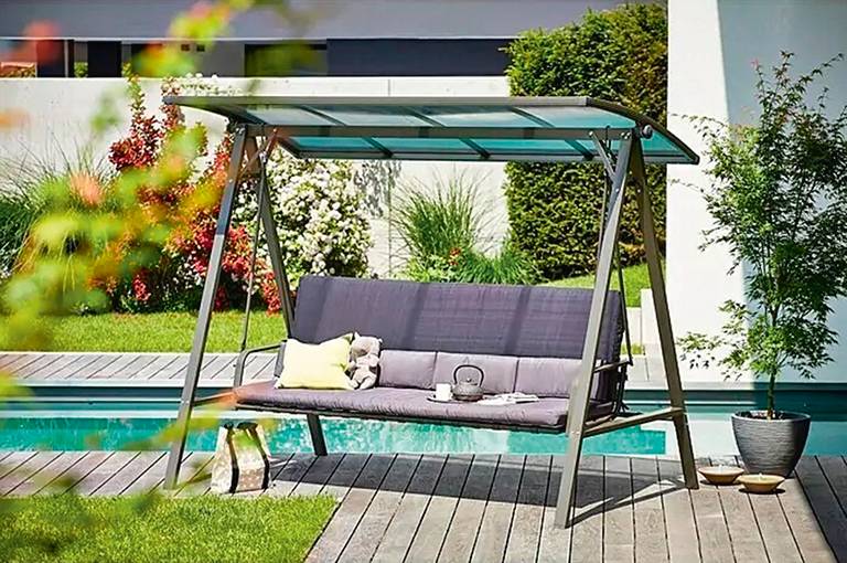 Velkým plusem houpačky FDZN 5207 je, že se dá sklopením opěradla rozložit na pohodlné lehátko. Masivní kovovou konstrukci chrání práškové lakování zajišťující dlouhou životnost. Cena 6 499 Kč