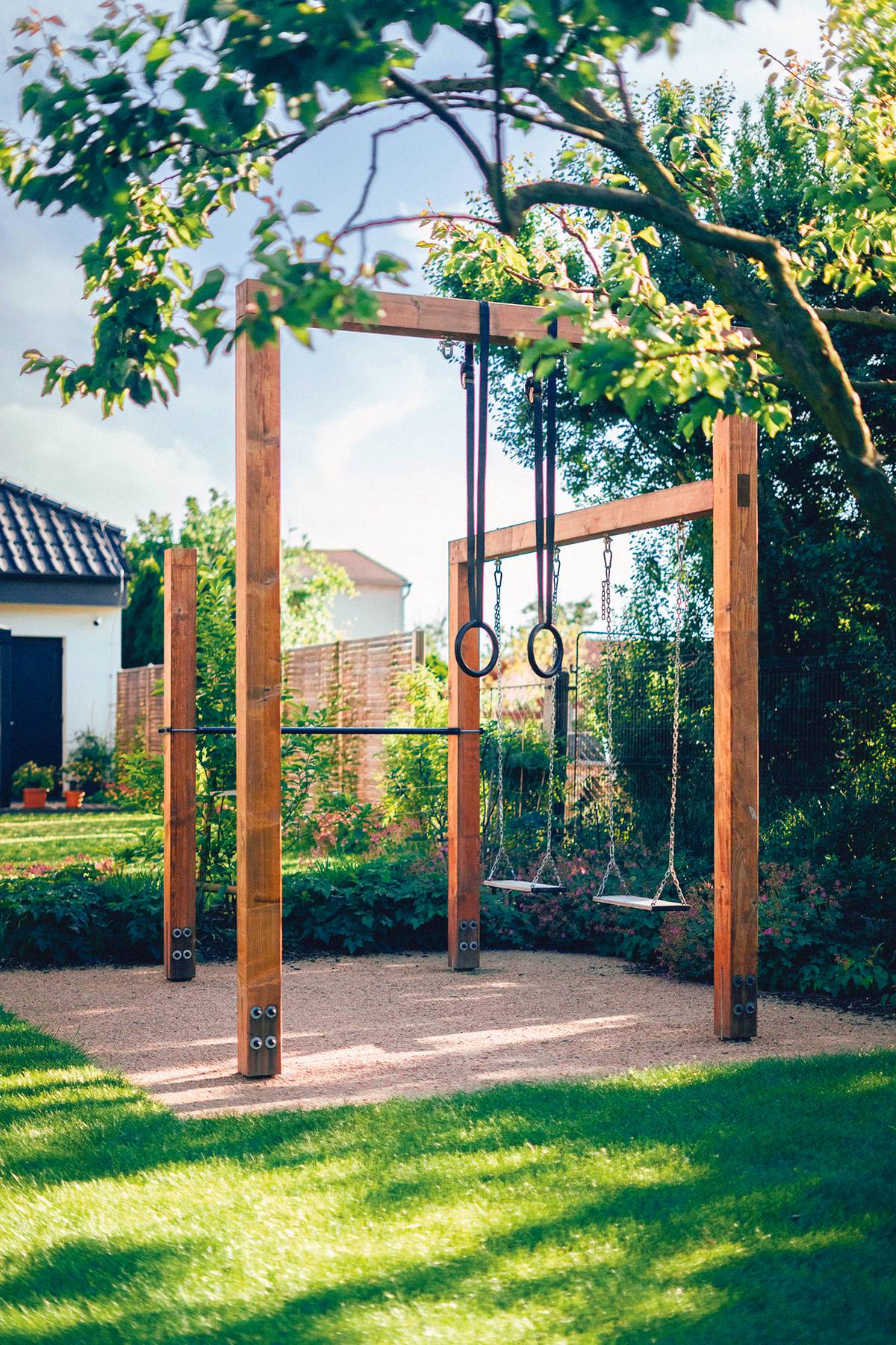 Pergola, houpačka nebo kruhy cvičení? Klidně vše dohromady.