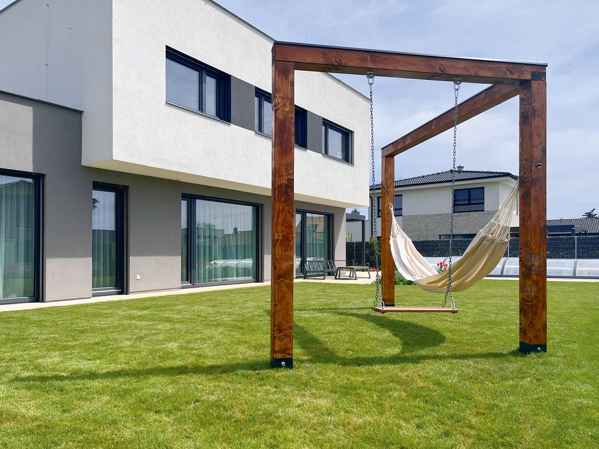 Minimalismus vládne i houpačkám. Trendem je proto konstrukce ve tvaru obráceného „U“.