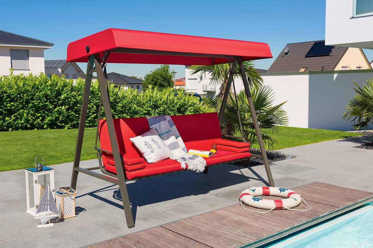 Největší předností atraktivní červené houpačky Maja je integrovaná funkce lehátka. Cena 7 641 Kč
