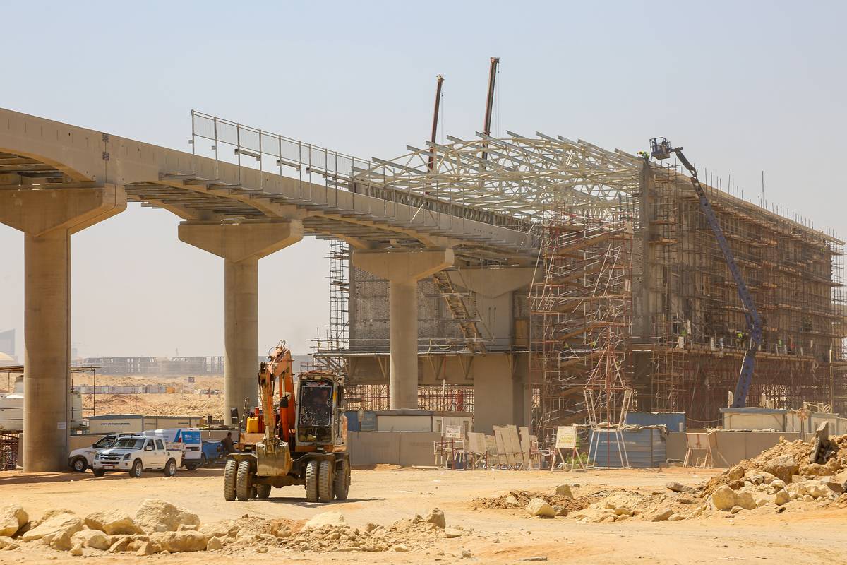 Na snímku pokračující práce na výstavbě jednokolejné trati v egyptském novém administrativním hlavním městě, 31. července.