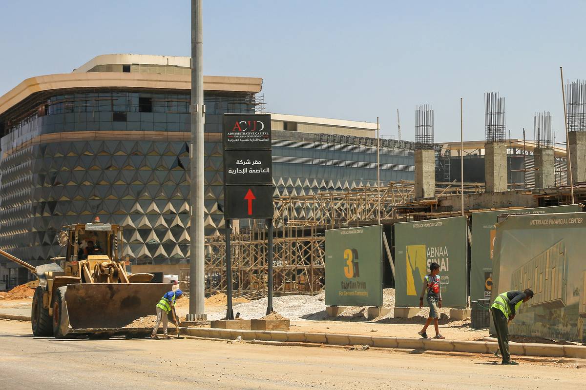 Nové město se buduje od roku 2015 v poušti 45 km východně od Káhiry u silnice k Suezu a má mít rozlohu okolo 700 km². Na snímku pokračující práce na jednokolejné trati, foceno 31. července.