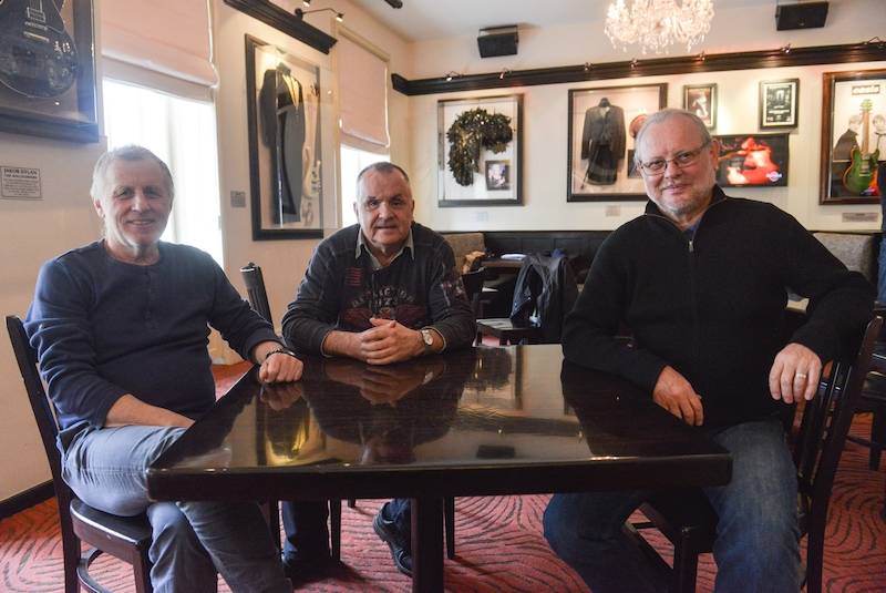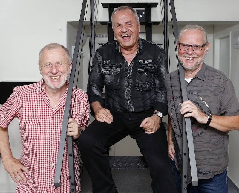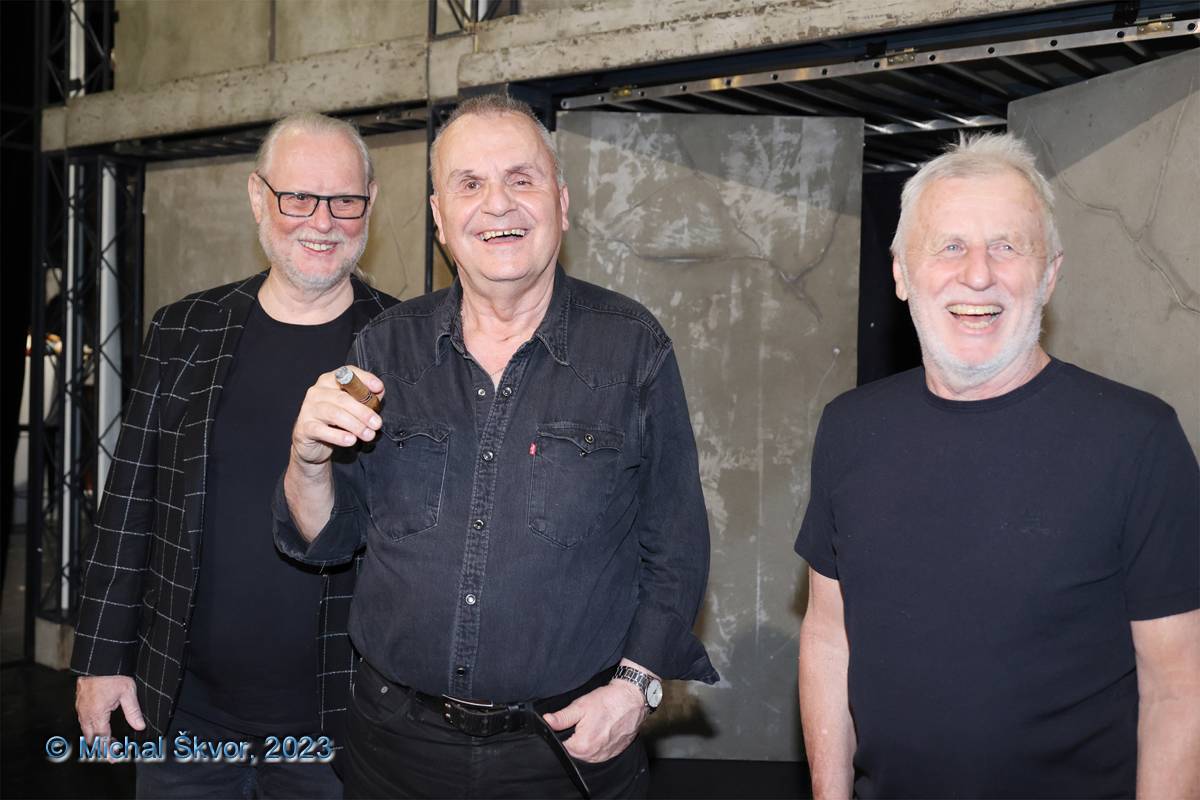 Elán při rozhovoru pro Právo, rok 2018. Zleva Ján Baláž, Jožo Ráž a Vašo Patejdl.