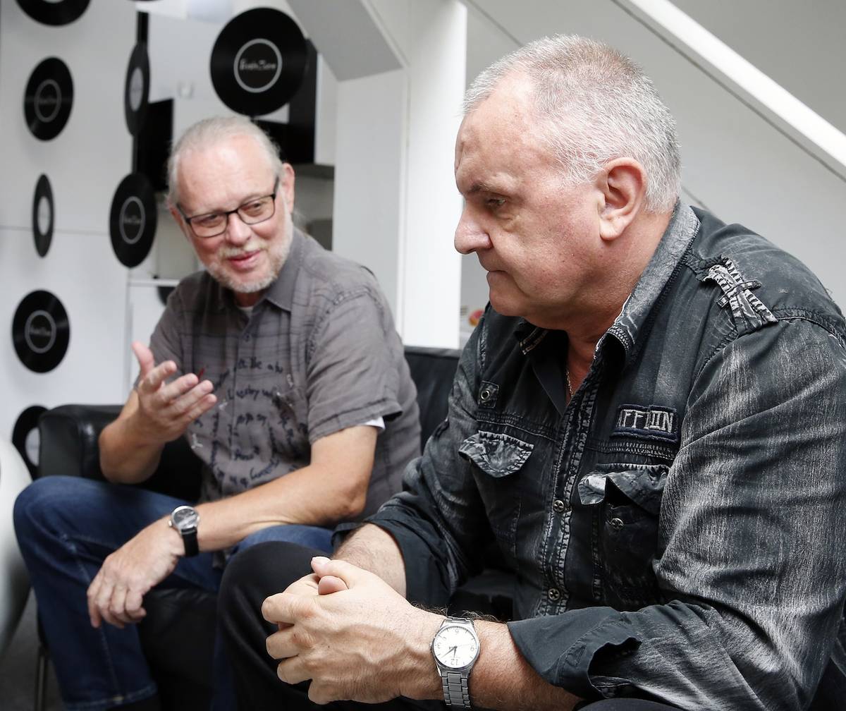 Vašo Patejdl a Hožo Ráž při rozhovoru pro Právo. Rok 2018.