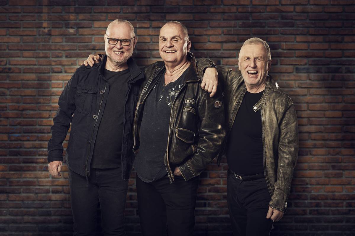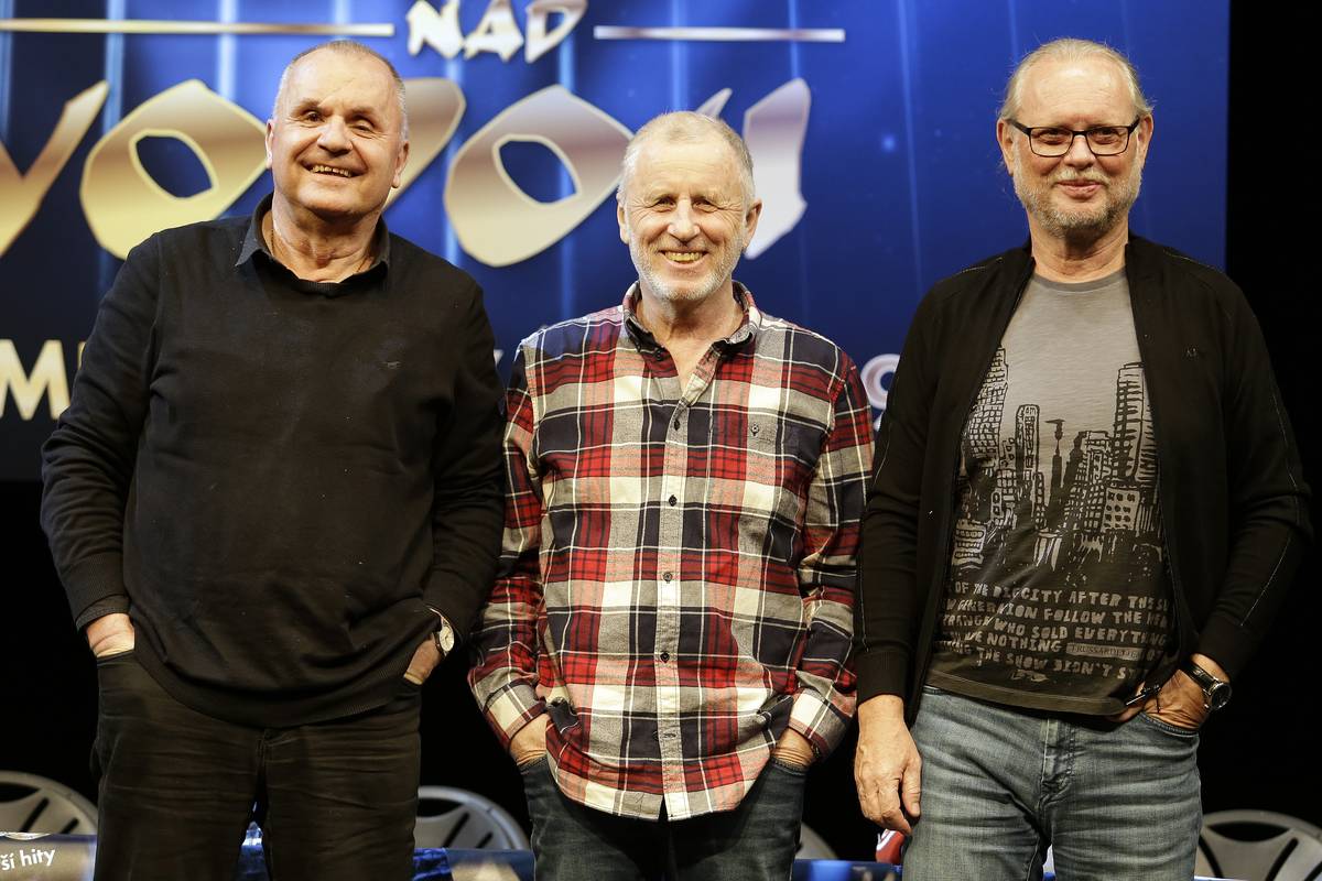 Členové skupiny Elán (zleva Jožo Ráž, Ján Baláž a Vašo Patejdl) se zúčastnili 27. března 2019 tiskové konference k plánovanému uvedení nového muzikálu Voda nad vodou, který od 5. září 2019 uvede divadlo Kalich.