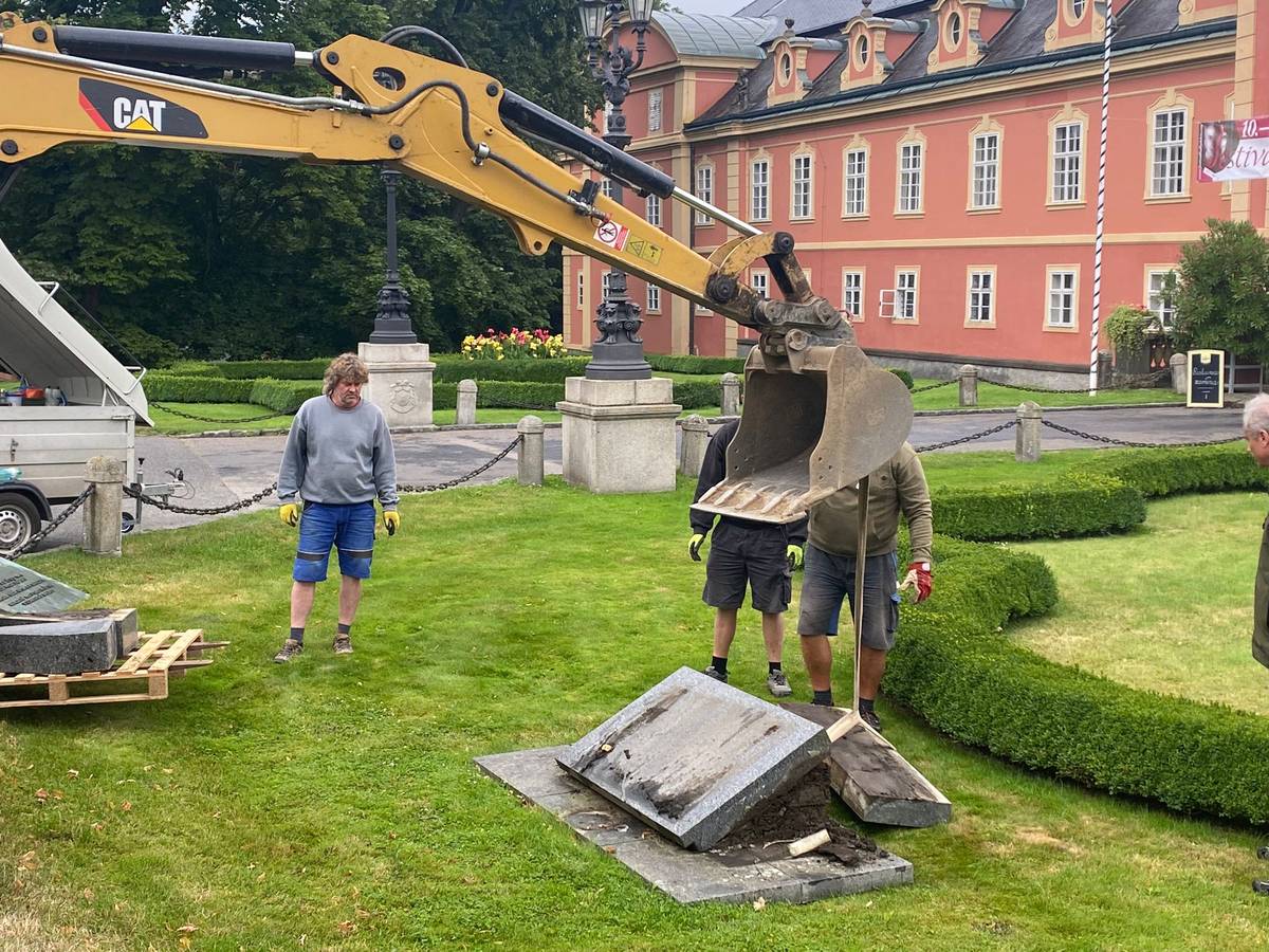 Město Dobříš přesunulo pamětní desku ze zámecké zahrady na místní hřbitov.