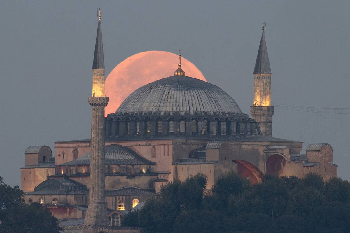 Měsíc nad mešitou Hagia Sophia v Istanbulu, 31. srpna.