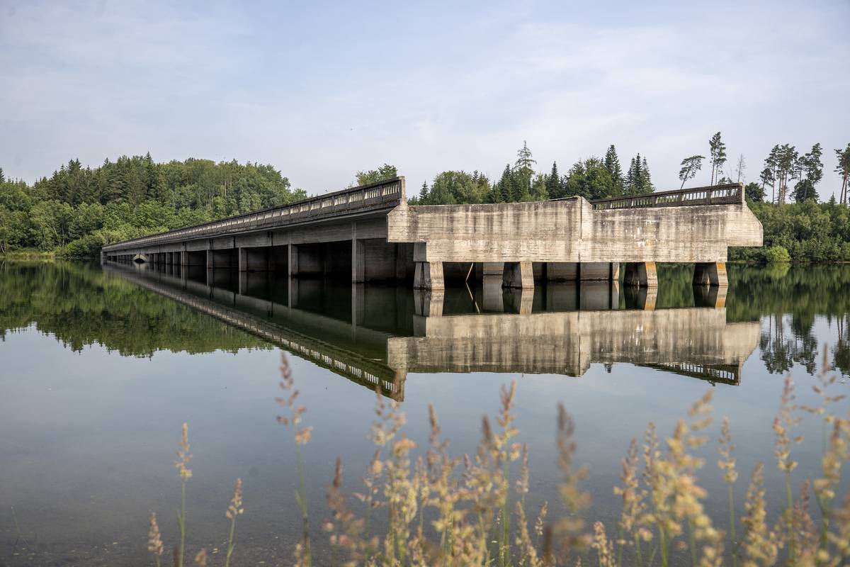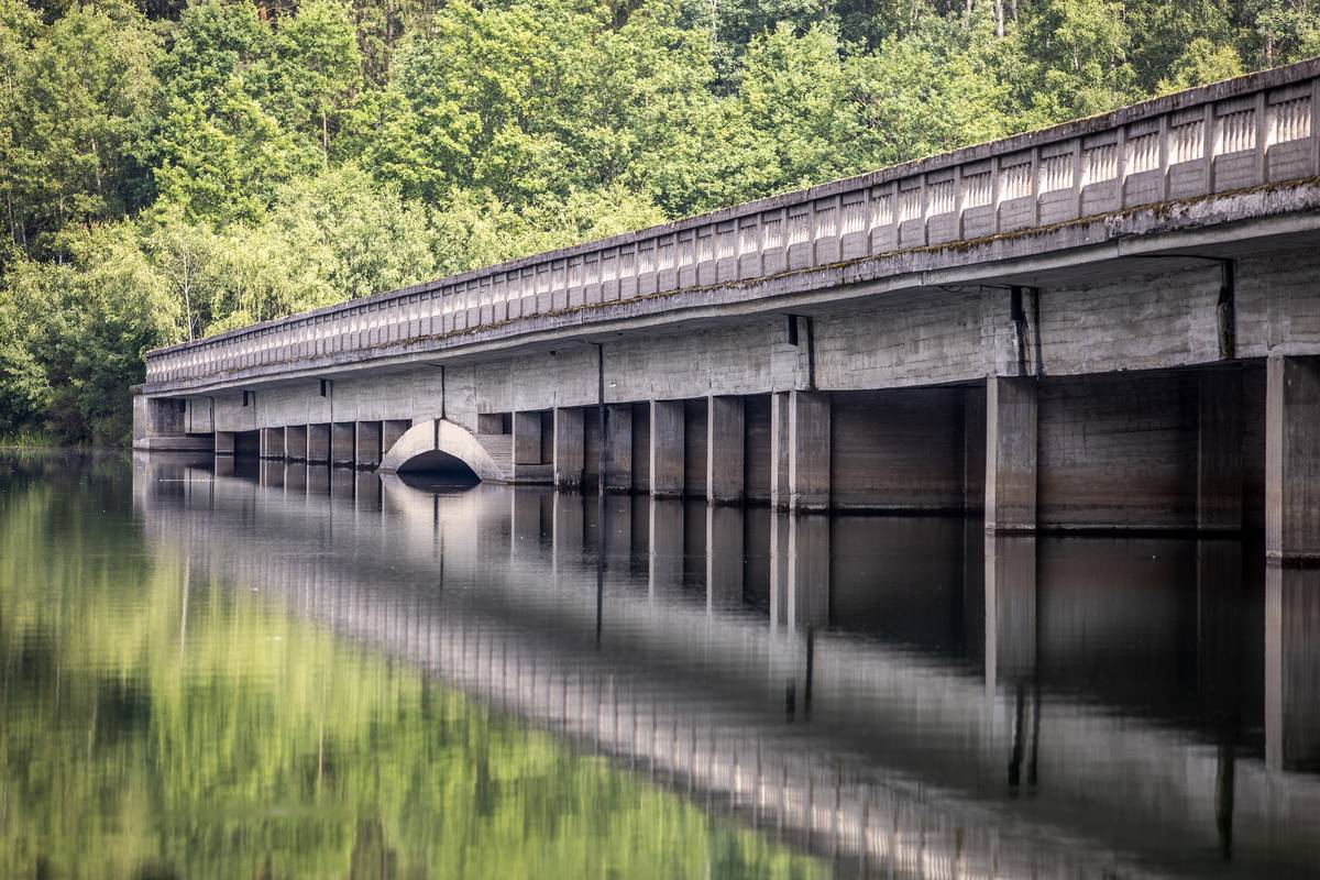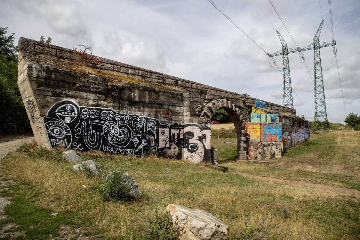 Nedokončený most u obce Borovsko, který měl být součástí zamýšlené dálnice D1. Stavět se začal za války, v červenci 1939.