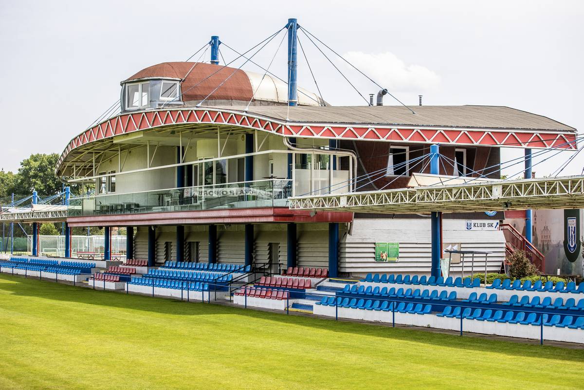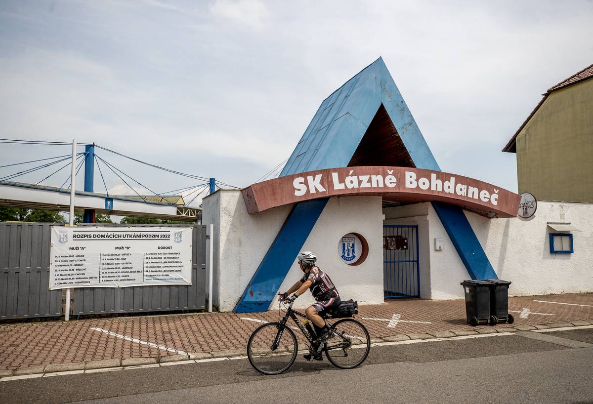 Fotbalový stadion v Lázních Bohdaneč. Na jaře 1997 tu slavili senzační postup do první ligy. Napomohl tomu tehdy fotbalový mecenáš Jiří Novák, bez jehož peněz by nebyl postup ani moderní stadion.