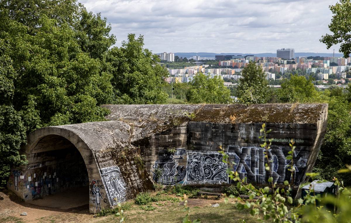 Fragmenty nedostavěné dálnice A88. Jedná se o mostní pilíř pro most přes údolí Svratky u hráze Brněnské přehrady.