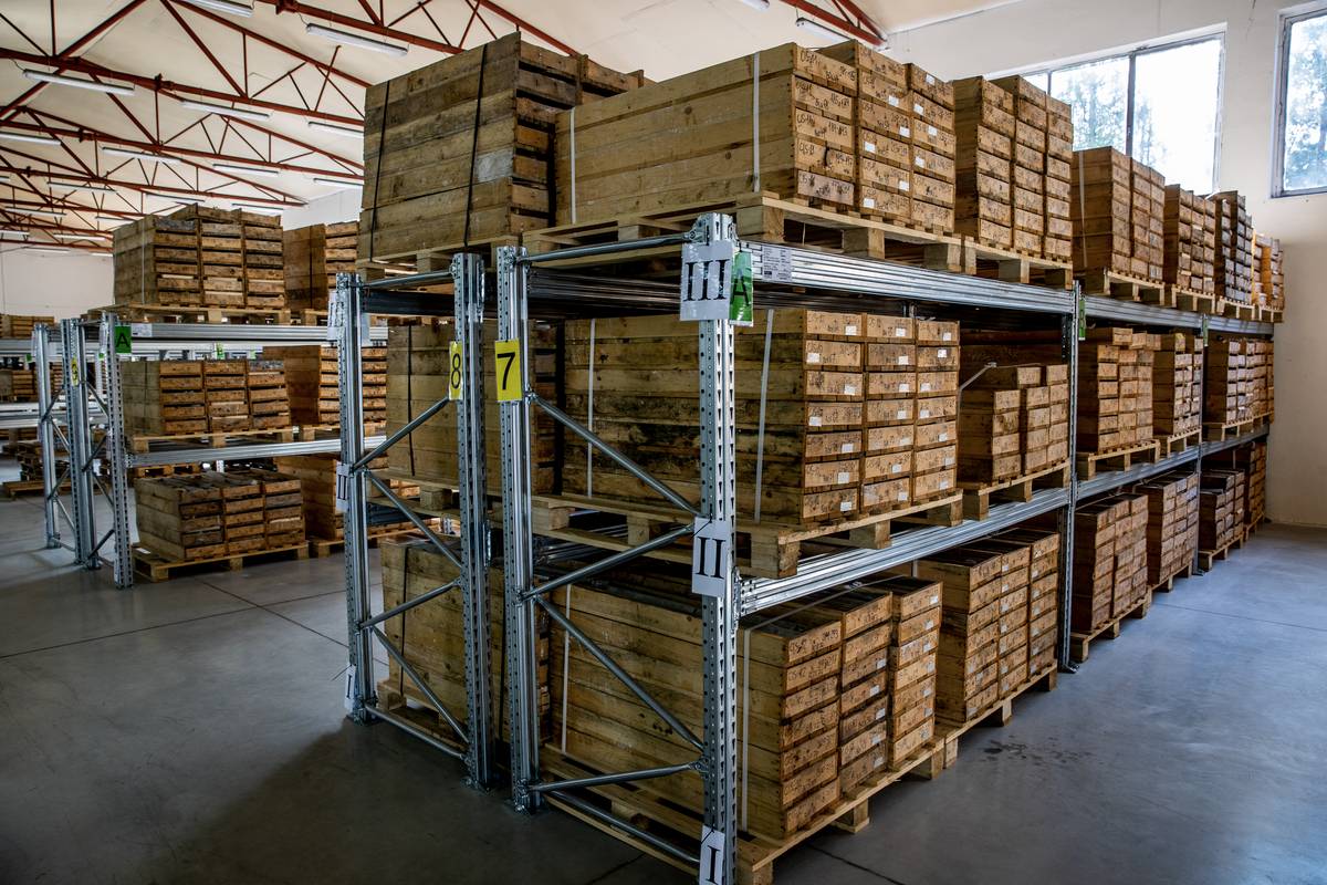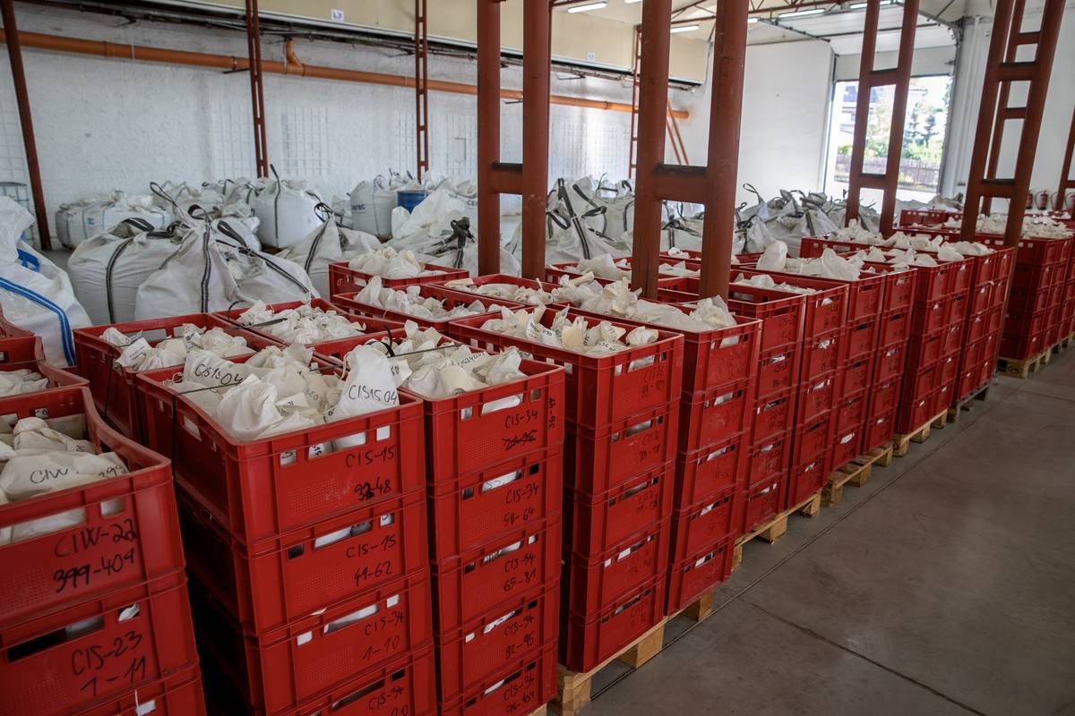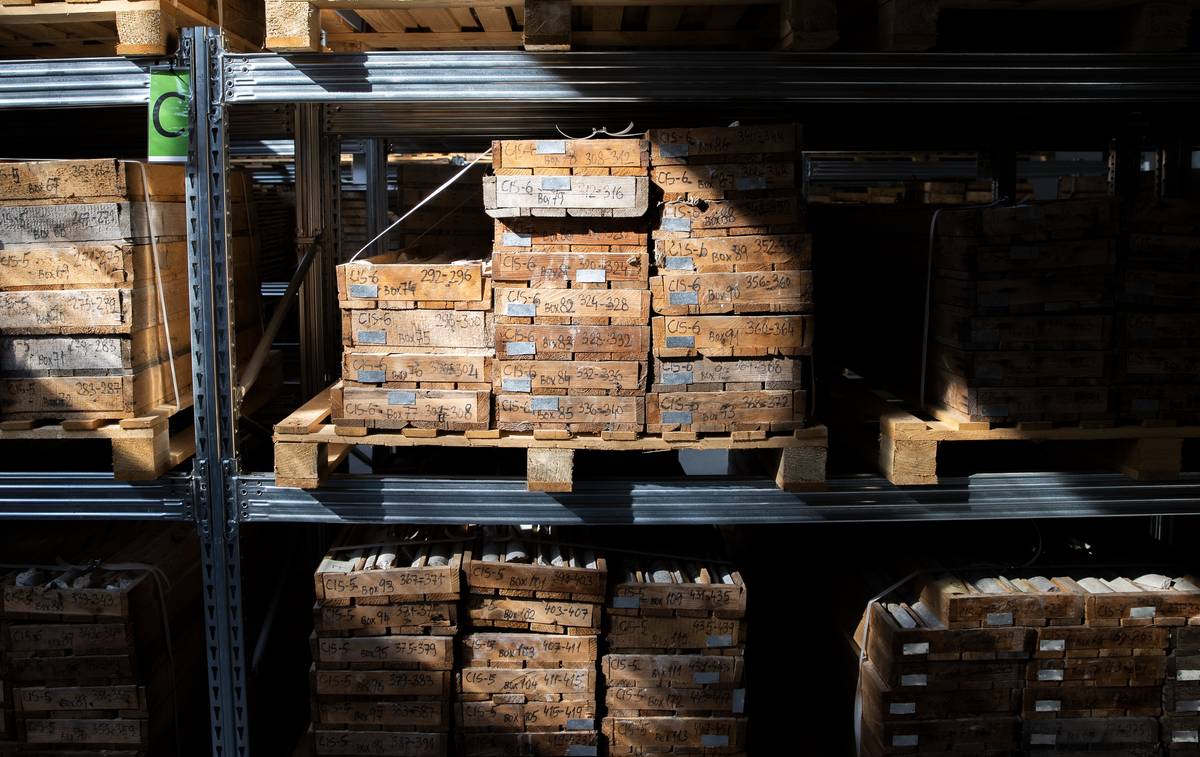 Sklad kamenných válečků: v hale firmy Geomet se skladuje hornina vytěžená z geologických vrtů.