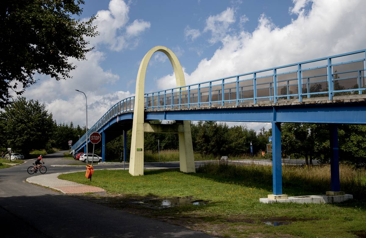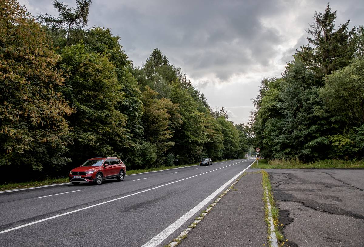 Nenápadná silnice vedoucí k budoucímu dolu na úpatí Cínovce.