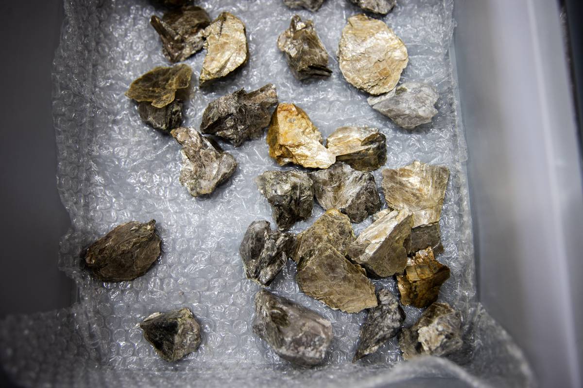 Geolog Tomáš Vrbický ukazuje, v které části křemene se lithium nachází.