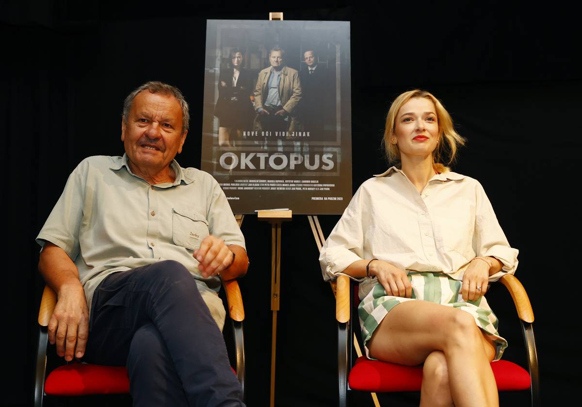 Novinářská projekce kriminálního seriálu Oktopus v produkci České televize. Na snímku herci Miroslav Krobot a Marika Šoposká.