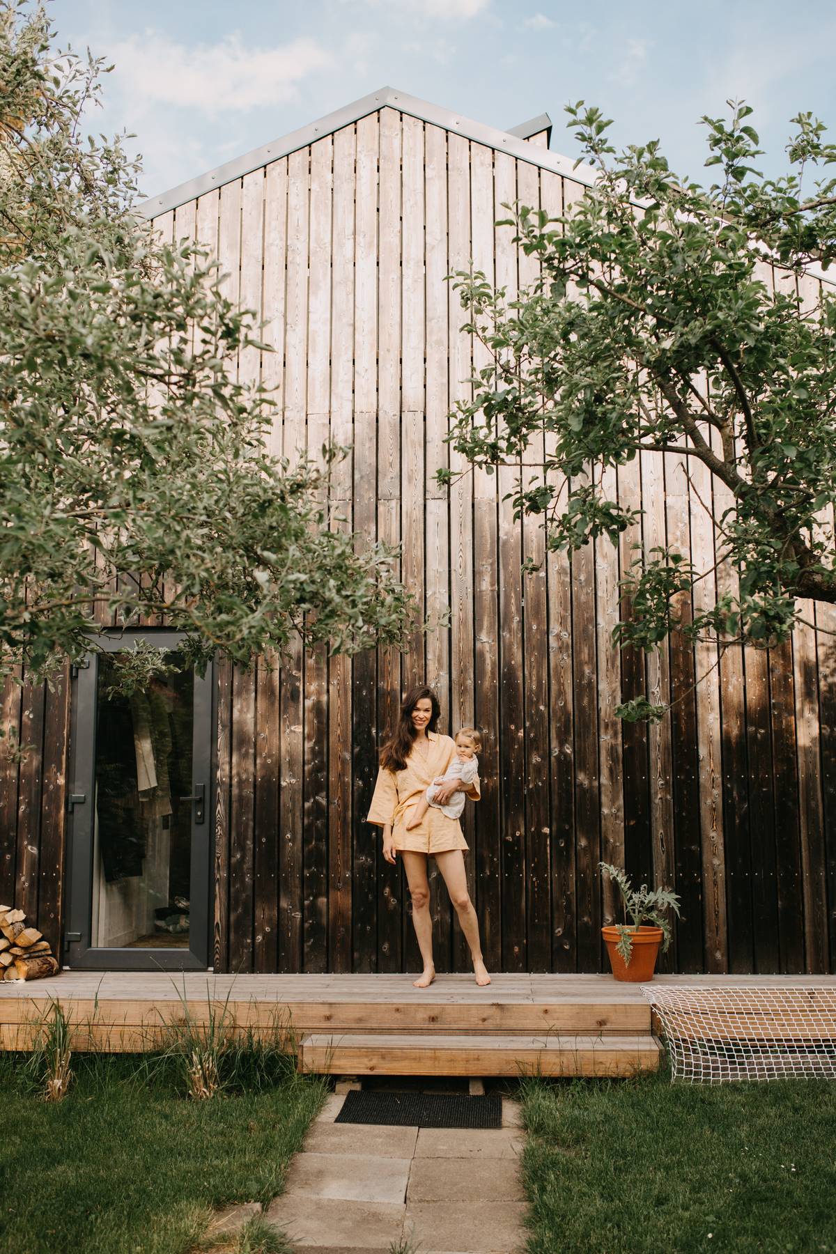 Modelka a herečka Olga Plojhar Bursíková s manželem a dcerkou Lottou v zahradě domu, kde stojí i prostorný ateliér