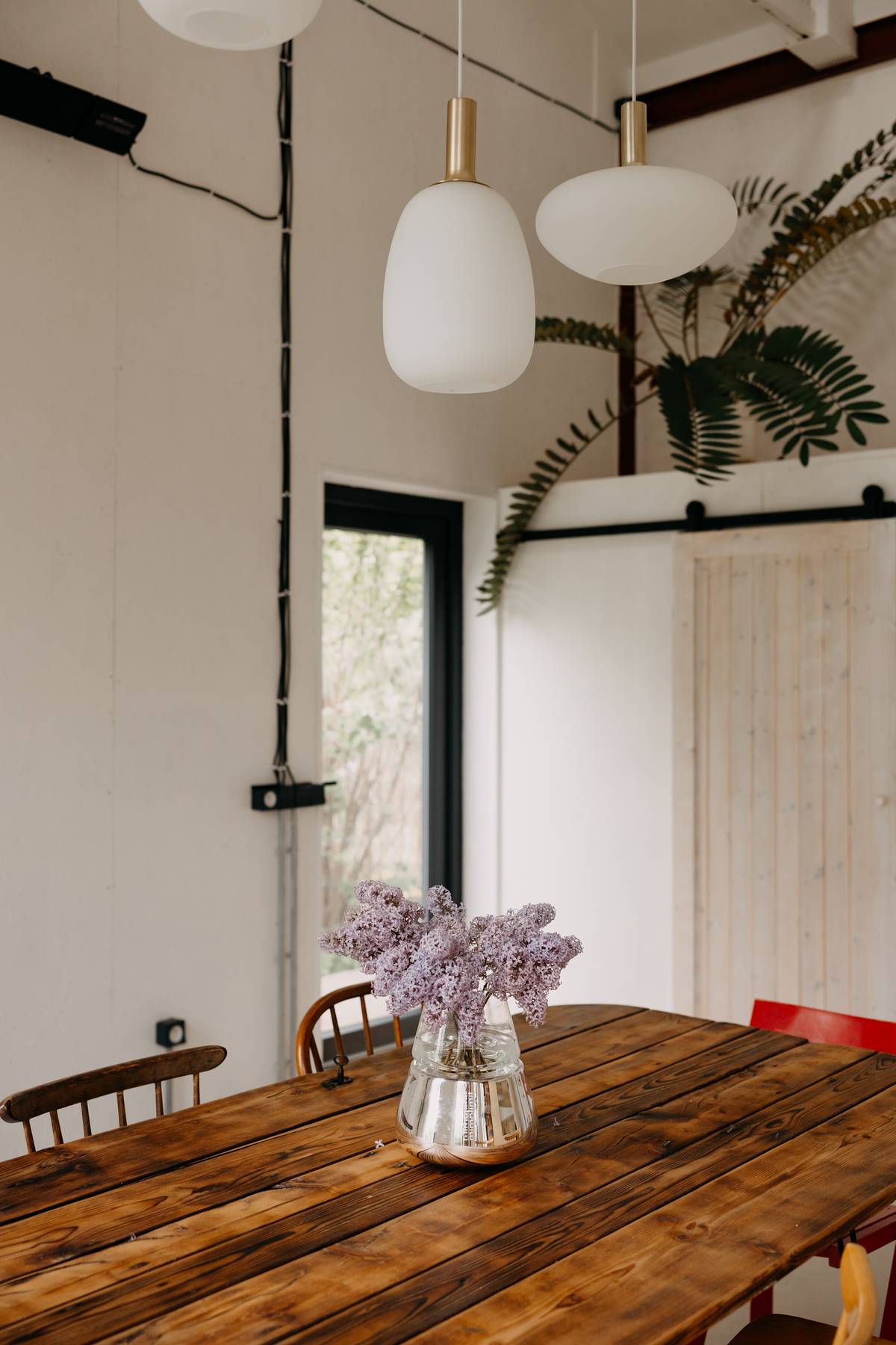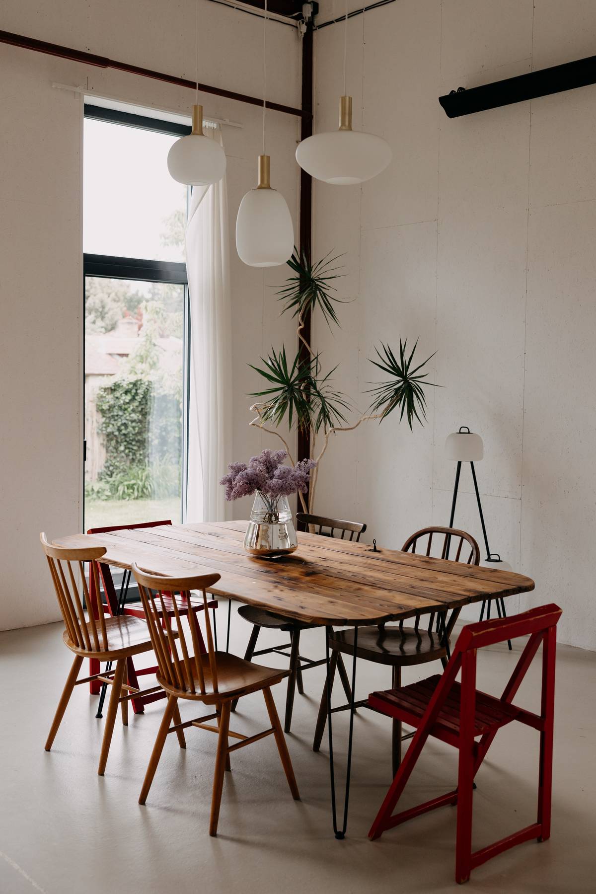 Židle značky Ton pocházejí z bazarového prodeje, svítidla jsou z e-shopu Severské světlo