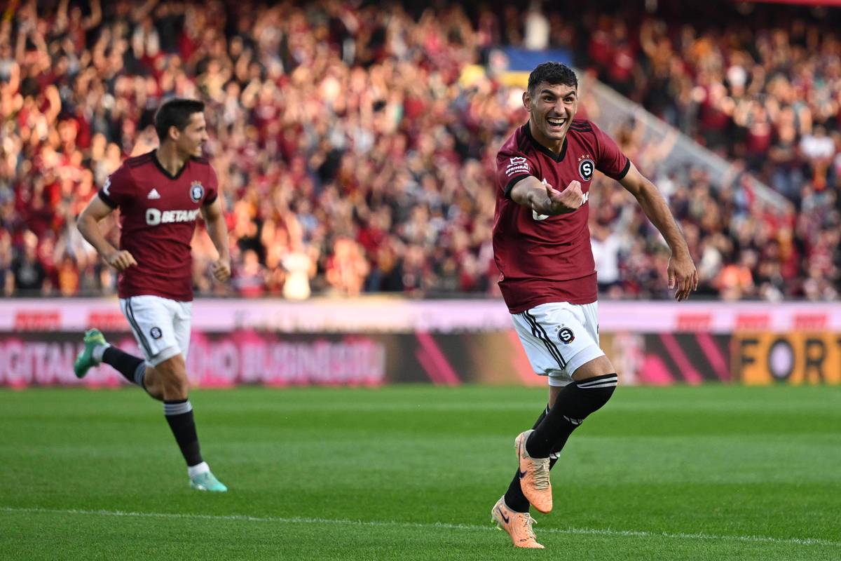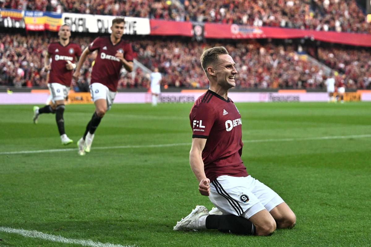Jan Kuchta ze Sparty se raduje z gólu na 2:1 v utkání s Plzní.