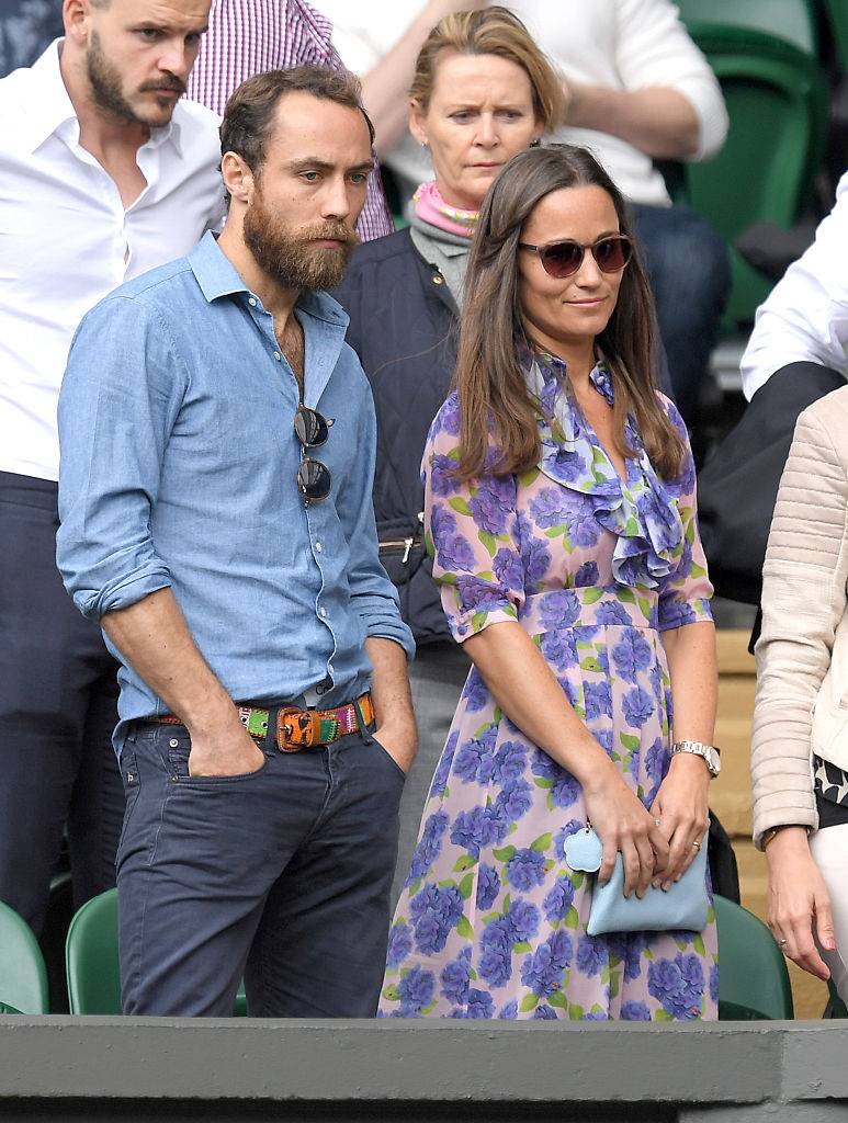 Červenec 2019. Pudrově růžová brunetce sluší! Po Pippině boku je její mladší bratr James a jde o další den tenisového turnaje
