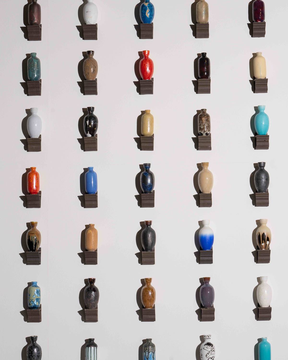 Milan Pekař se během svého doktorského studia zabýval výzkumem efektujících glazur. Vznikly tak stovky malých testovacích váziček. Jejich instalace volně odkazuje k „porcelánovým pokojům“, které byly v době, kdy byl porcelán jedním ze symbolů luxusu a bohatství, nedílnou součástí šlechtických sídel